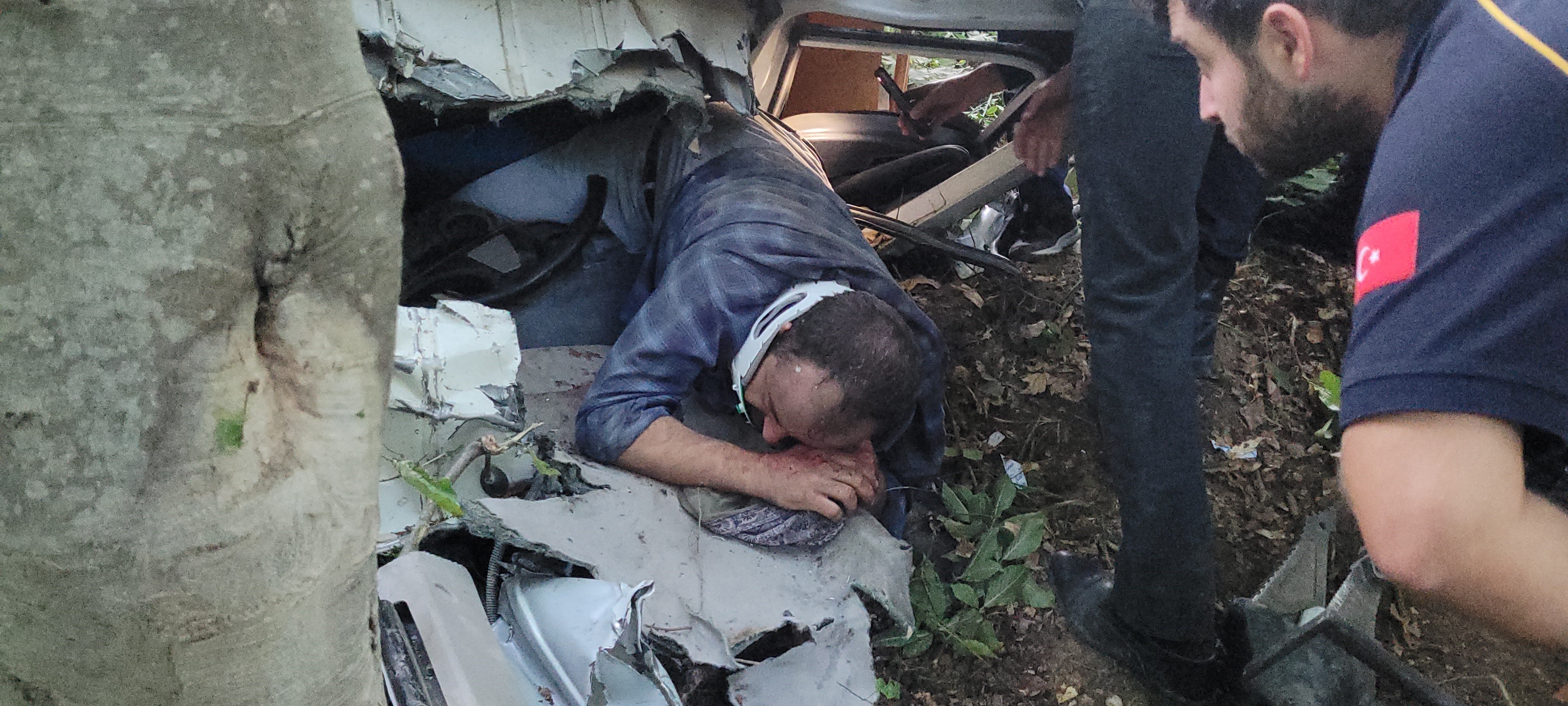 Kabin içerisinde sıkışan sürücüyü kurtarmak için Cide itfaiye ekipleri yaklaşık 5 saat mücadele verdi. Sağlık ekiplerinin de zaman zaman müdahalede bulunduğu sürücü, sıkıştığı yerde uyumak istemesi üzerine itfaiye ekiplerince başına su dökülerek uyutulmamaya çalışıldı.