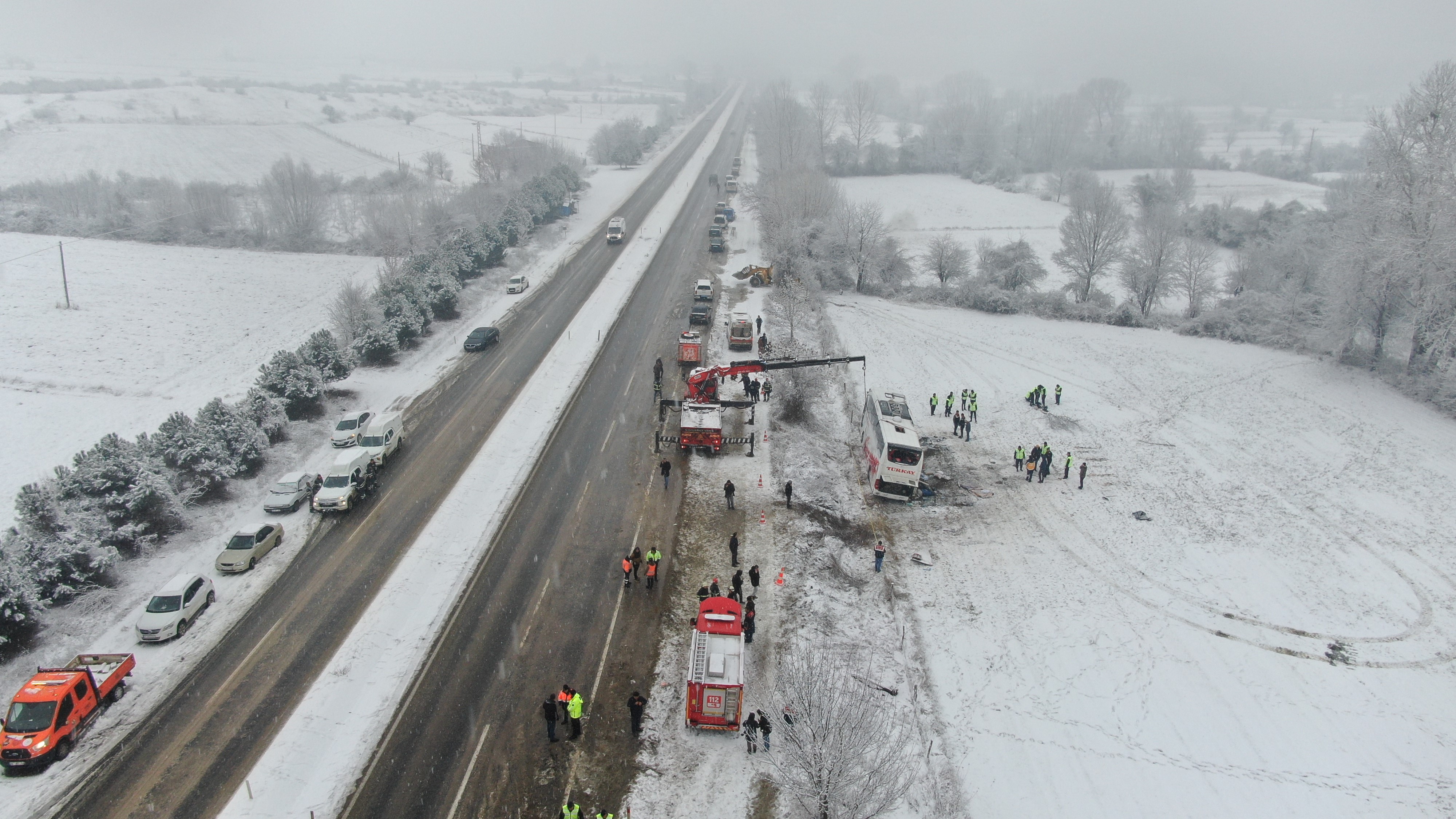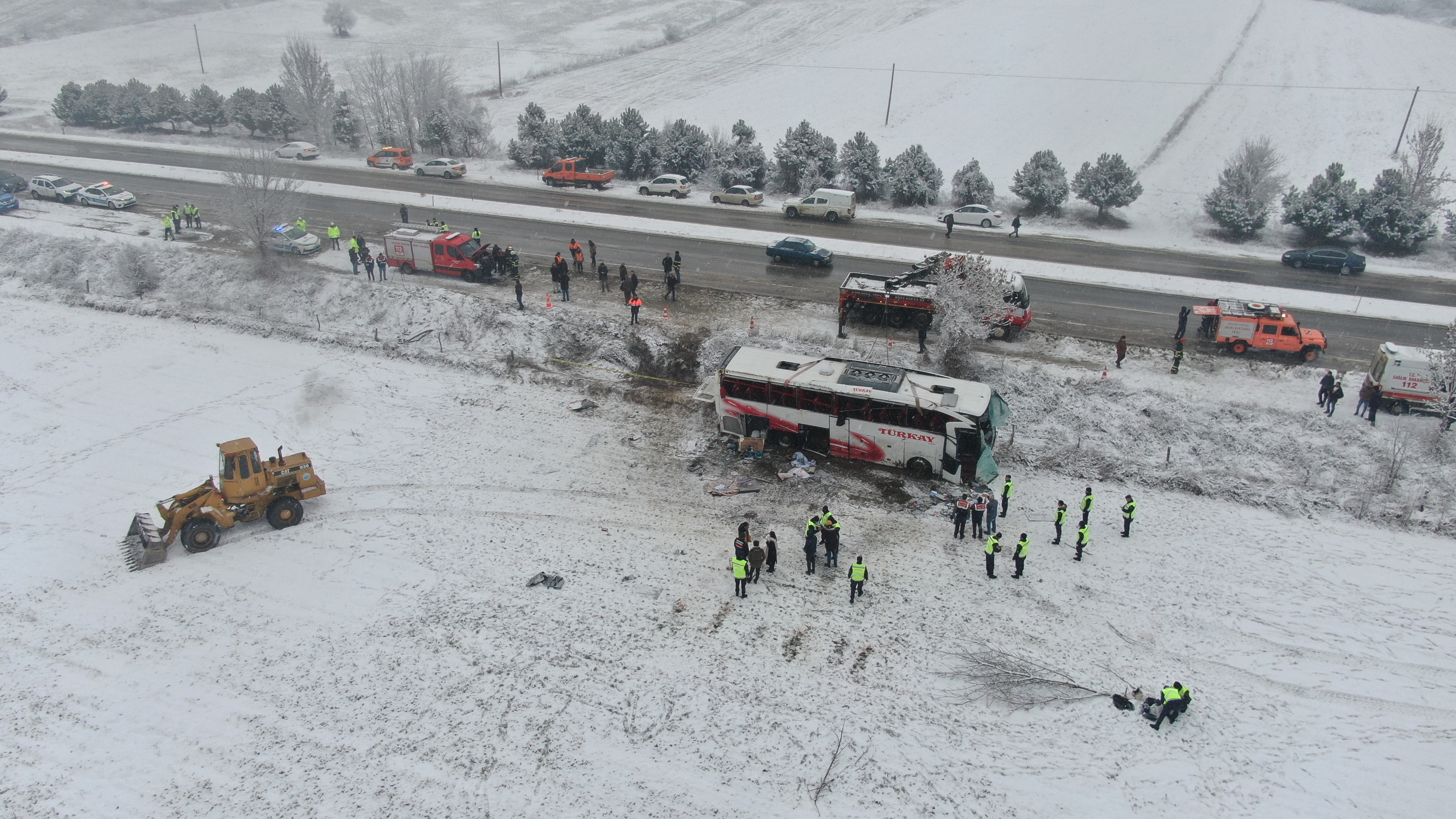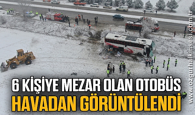 6 kişinin kaybettiği otobüs ise dron ile görüntülendi.