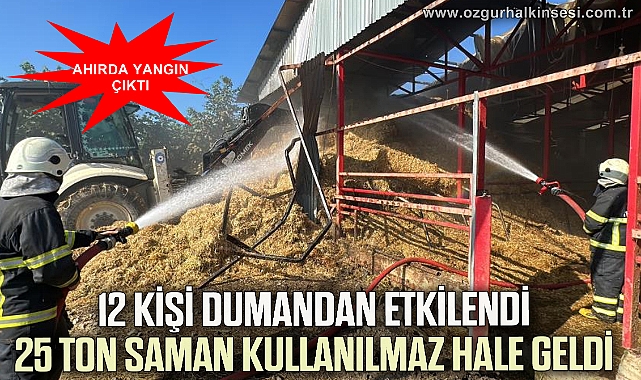 Olay, Ozanlar köyünde meydana geldi. Murat Temeltaş’a ait ahırda henüz belirlenemeyen bir sebeple yangın çıktı. Alevlerin yükseldiğini gören vatandaşlar 112 Acil çağrı Merkezine haber verdi. İhbar üzerine bölgeye Düzce Belediyesi İtfaiye Müdürlüğü ve sağlık ekipleri sevk edildi. Olay yerine ulaşan ekipler, ahırdaki hayvanların tahliyesini sağlamasının ardından söndürme çalışmalarına başladı. Yaklaşık bir saatlik çalışmanın ardından yangın kontrol altına alındı. Yangına müdahale etmeye çalışan 12 vatandaş ise dumandan etkilendi. Ambulansa alınan vatandaşlara oksijen verildi. Yangında yaklaşık 25 ton saman kullanılamaz hale gelirken olayla ilgili inceleme başlatıldı.