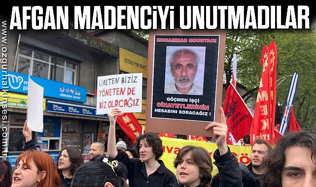Bülent Ecevit Üniversitesi öğrenci birliği ile yürüyen grup öğrenci Kilimli’nin Gelik beldesinde öldürdükten sonra yakılan Afgan Madenci Mohammad Nourtani’nin fotoğrafnı taşıdılar.