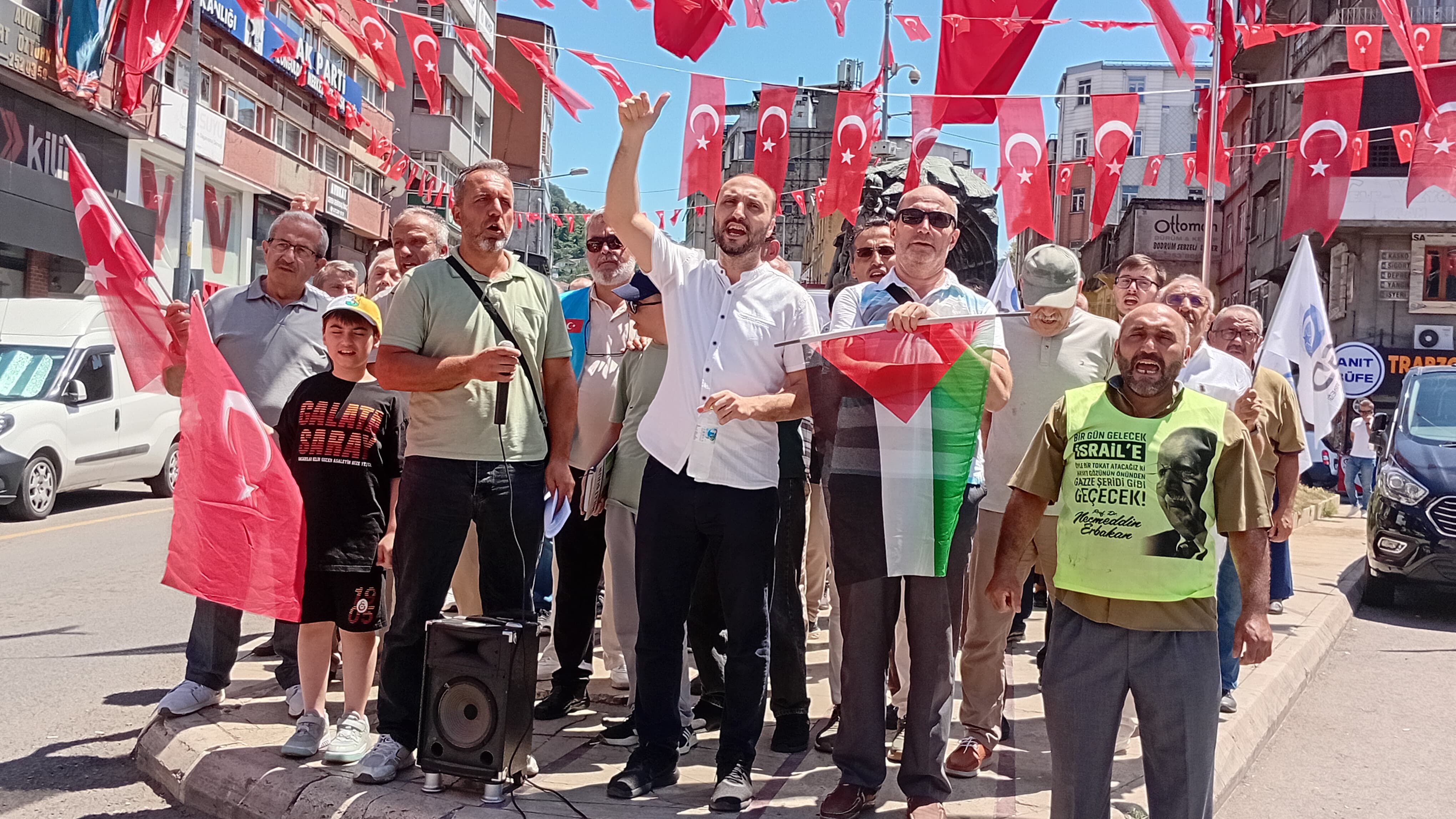 Açıklamada, İsrail'in devam eden saldırılarında 40 binden fazla Filistinlinin şehit olduğunu, on binlerce kişinin yaralandığını ve şehirlerin yerle bir edildiği belirtilerek, direniş çağrısı yapıldı.Haber: Cevat Baran ÇAYDAŞ Madenci Anıtı önünde Filistin ve Türk bayrakları açıp işaret parmaklarını havaya kaldıran protestocu grup, "Hamas'a selam direnişe devam" ve "Kahrolsun İsrail" sloganlarını attı. Protestoya Saadet Partisi Zonguldak Merkez İlçe Başkanı İsmail Üstünyer de destek verdi.Grup adına basın açıklamasını yapan AGD Başkan Yardımcısı Hamza Girgin, Gazze'de yaşananları "insanlığın onurunu kaybettiği yer" olarak nitelendirdi.Girgin açıklamasında şunları kaydetti:"Bugün burada sadece bir basın açıklaması yapmak için değil, yanan bir coğrafyanın, kuşatma altındaki bir halkın, sabrın doruğundaki bir ümmetin sesi olmak için toplandık.