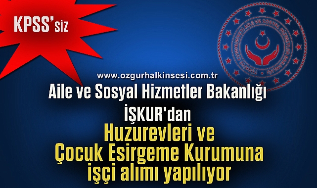 Aile ve Sosyal Hizmetler Bakanlığı İŞKUR'dan huzurevleri ve çocuk esirgeme kurumuna işçi alımı yapılıyor.