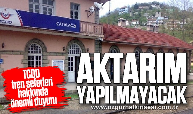 16.11.2025 ile 15.03.2026 tarihleri arasında Zonguldak - Çatalağzı – Zonguldak istasyonları arası yol kesintisiz olarak demiryolu tren trafiğine kapatılacağından;