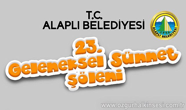 Alaplı Belediyesi tarafından düzenlenecek olan 23. Geleneksel sünnet Şöleni 28 Temmuz 2023 Cuma günü yapılacak. Şölene mehteran takımı katılacak.