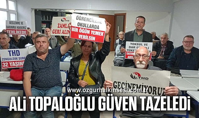 Sözlerini kentin sorunlarına çözüm çağrısıyla noktalayan Topaloğlu, "Çünkü hepimiz bu kentte yaşıyoruz. Sokağa çıktığımız zaman a partisi, b partisi ve görüşü ne olursa olsun hepimiz birbirimize selam veriyoruz. Dolayısıyla bu kentin ortak sorunlarını masaya yatırıp bunun çözümü için de önerim onay almaz demeden bu kentin yaşanır, çağdaş bir hale getirmek en temel görevimizdir diye düşünüyorum" ifadelerini kullandı.Tek aday ve tek listenin yer aldığı kongrede, Topaloğlu'nun karşısına başka bir aday çıkmaması üzerine oylama sonucunda, mevcut Şube Başkanı Ali Topaloğlu görevine yeniden seçilerek güven tazeledi.