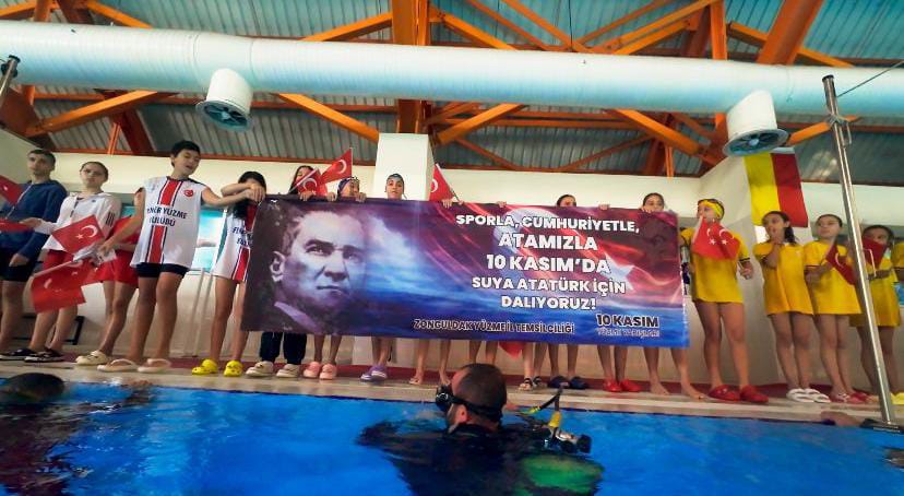 Yarışların açılış seremonisinde, Keşif ve Rekreasyon Dalış Ekibine bağlı su altı dalgıçları özel bir gösteri sundu.Dalgıçların, su altından çıkartarak açtıkları “Sporla, Cumhuriyetle, Atamızla; 10 Kasım’da Suya Atatürk İçin Dalıyoruz” yazılı pankart izleyenlerden alkış aldı.Zonguldak Yüzme İl Temsilcisi Mehmet Atakan Oğuzhan, organizasyona destek veren Zonguldak Gençlik ve Spor İl Müdürü Halil Hacı’ya, Kilimli Gençlik ve Spor İlçe Müdürü Önder Keskin’e, Keşif ve Rekreasyon Dalış Ekibine, tüm kulüplere, organizasyonun en değerli parçası olan tüm sporculara ve emeği geçen herkese teşekkür etti.
