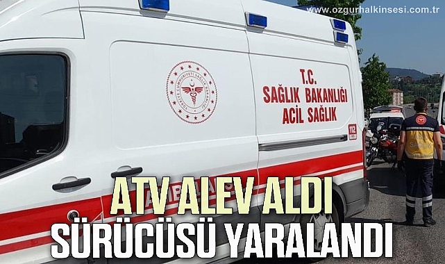 Zonguldak'ın Ereğli ilçesinde seyir halindeyken birden alev alan ATV'nin sürücüsü yaralandı.