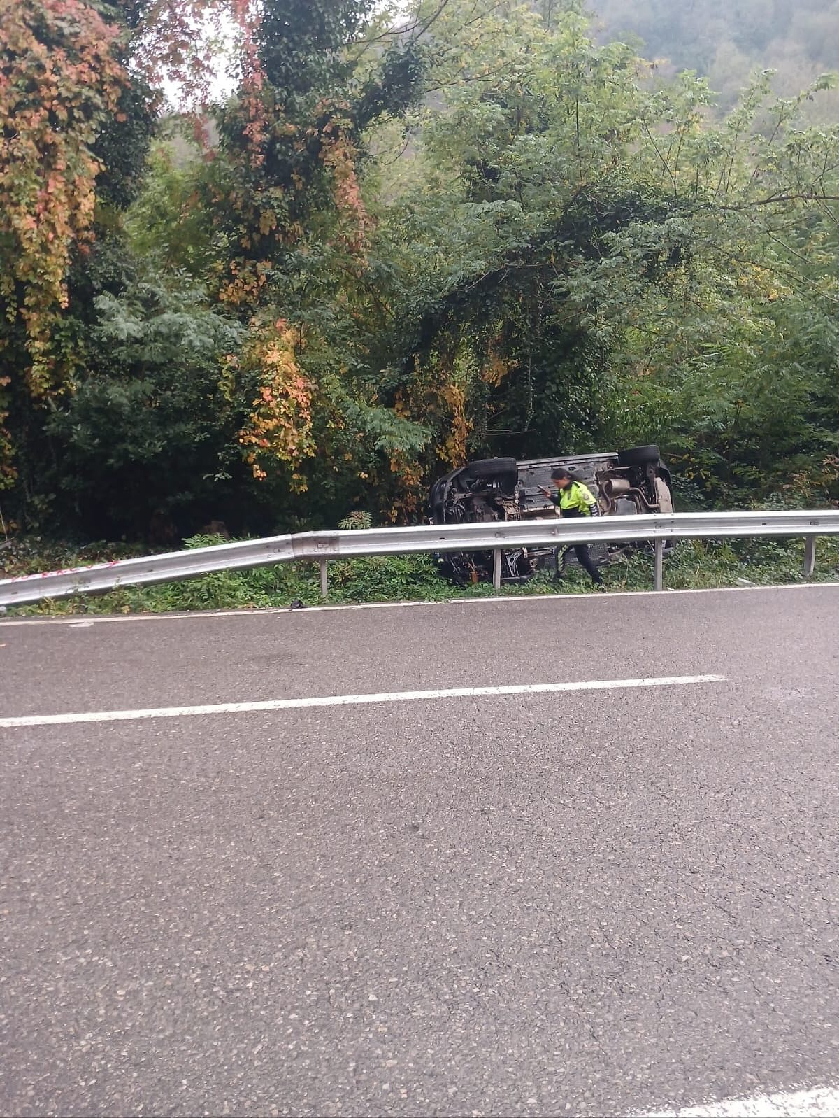 Edinilen bilgiye göre, 61 DL 374 plakalı araç şoförü sağanak yağış nedeniyle direksiyon hakimiyetini kaybedince araç bariyeri aşarak yıldan çıktı. Yan yatan araçta sıkışan iki kişi yoldan geçen vatandaşların yardımıyla çıkartırken ihbar üzerine olay yerine gelen ambulansla hastaneye kaldırıldılar.Kazayla ilgi