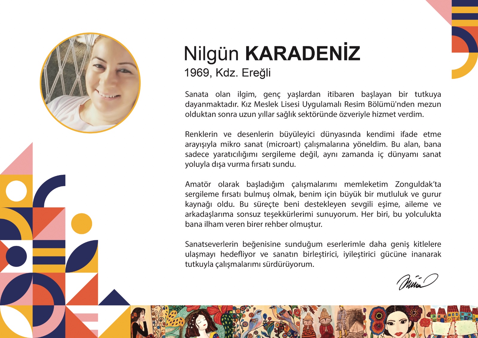 Eserlerini ilk kez sergileyecek olan Karadeniz, Zonguldak ile ilgili de çalışmaları olduğunu belirterek, Zonguldaklı sanatseverleri ve resimle ilgilenen veya ilgilenmeyen herkesi resim penceresinden bakmaya davet etti.
