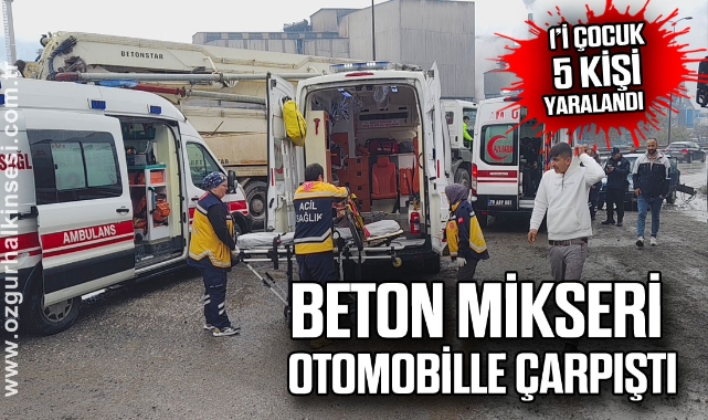 Karabük'te beton mikseri ile otomobilin çarpışması sonucu 1'i çocuk olmak üzere 5 kişi yaralandı.