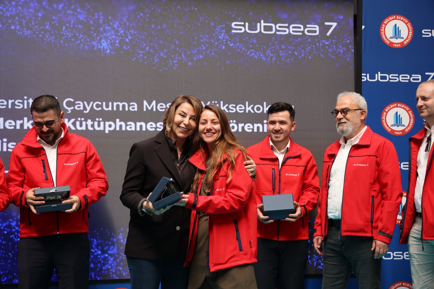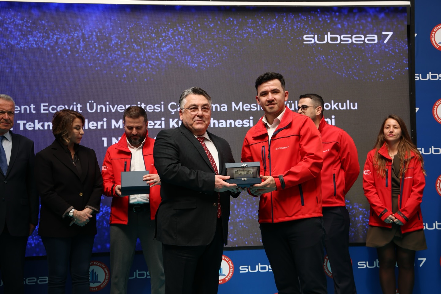 Konuşmaların ardından Rektör Prof. Dr. İsmail Hakkı Özölçer tarafından Subsea7 yönetim ekibine plaket takdim edildi. Program, kurdele kesimiyle devam ederken katılımcılar kütüphaneyi gezerek yapılan çalışmaları yerinde inceledi.