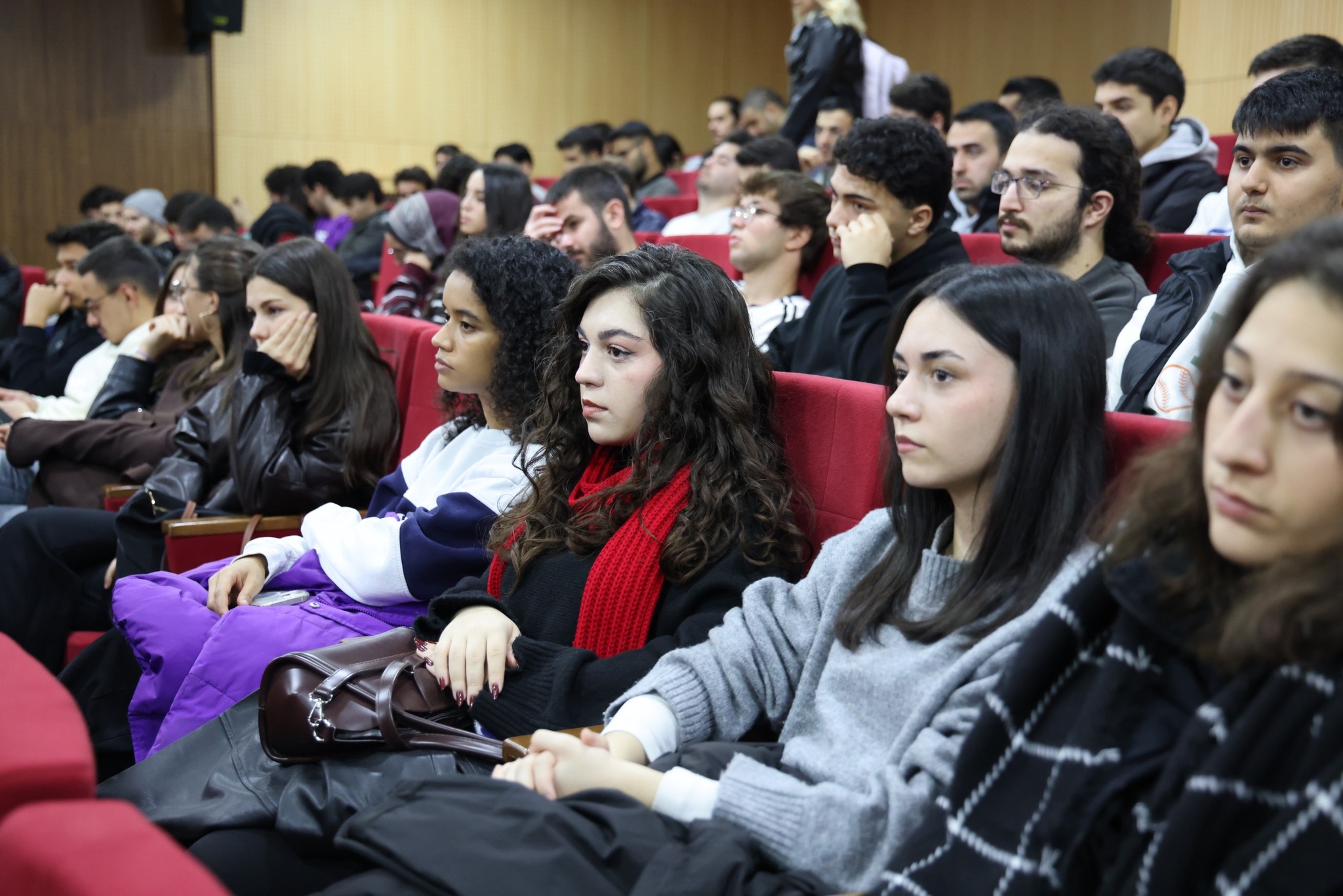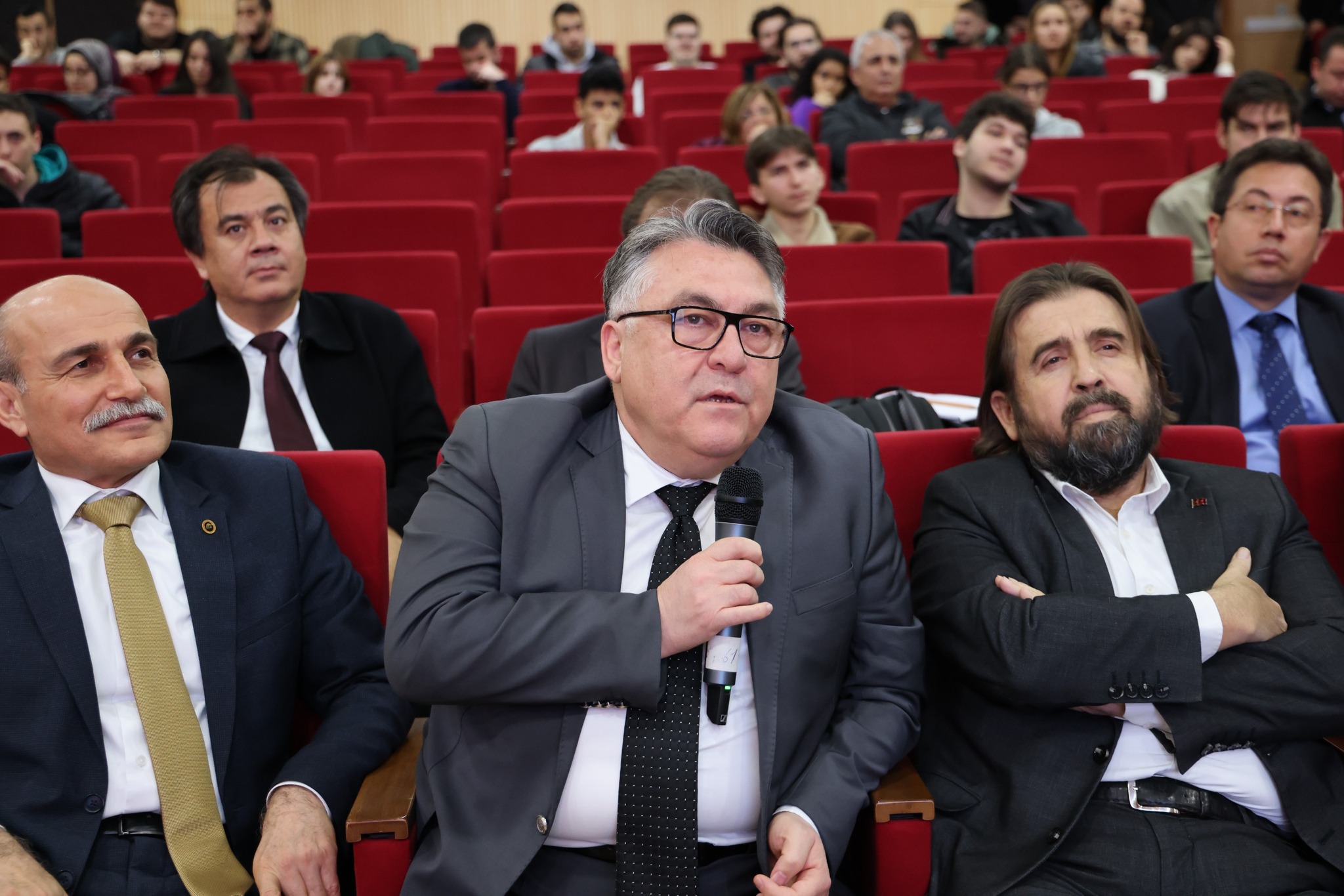 Konuşmasında enerji kaynakları, diplomasi, Karadeniz iş birlikleri ve teknolojik gelişmeler üzerine değerlendirmelerde bulunan Prof. Dr. Uğur Çevik, COP31’in Türkiye’de düzenlenecek olmasının ülke adına önemli bir kazanım olduğunu ifade etti.