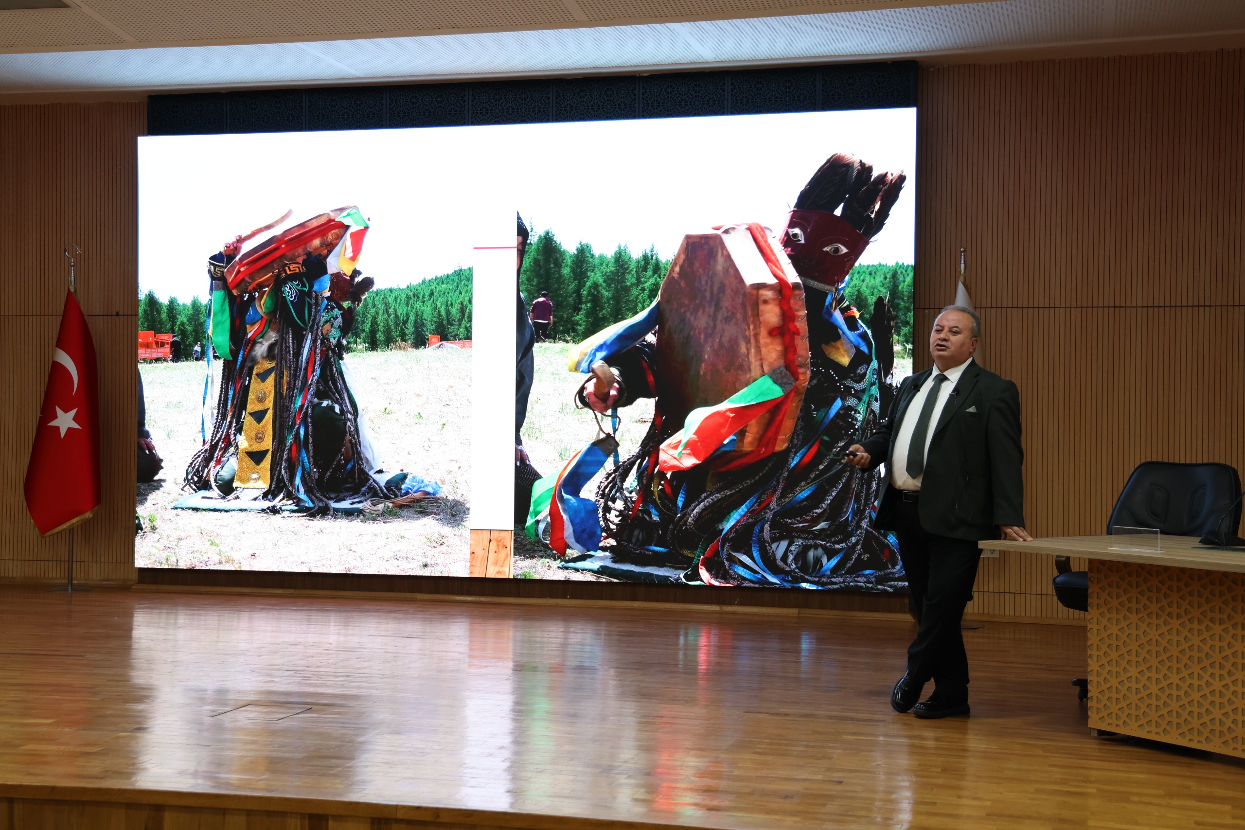Konferansa davetli konuşmacı olarak katılan Türk Arkeoloji ve Kültürel Miras Enstitüsü Başkanı Prof. Dr. Şaban Doğan, “Moğolistan'daki Türk Kültür Varlıkları (Yazıtlar, Şehir Harabeleri, Taşbabalar)” başlıklı sunumunda, Türk kültür varlıklarının yerinde korunması ve bütüncül şekilde ele alınmasının önemini vurguladı. Prof. Dr. Doğan, Moğolistan’ın hemen her bölgesinde belgelenen yaklaşık 200’e yakın yazıtın, kadim bozkır medeniyetinin izlerini taşıyan büyük bir kültürel miras olduğunu belirtti.
