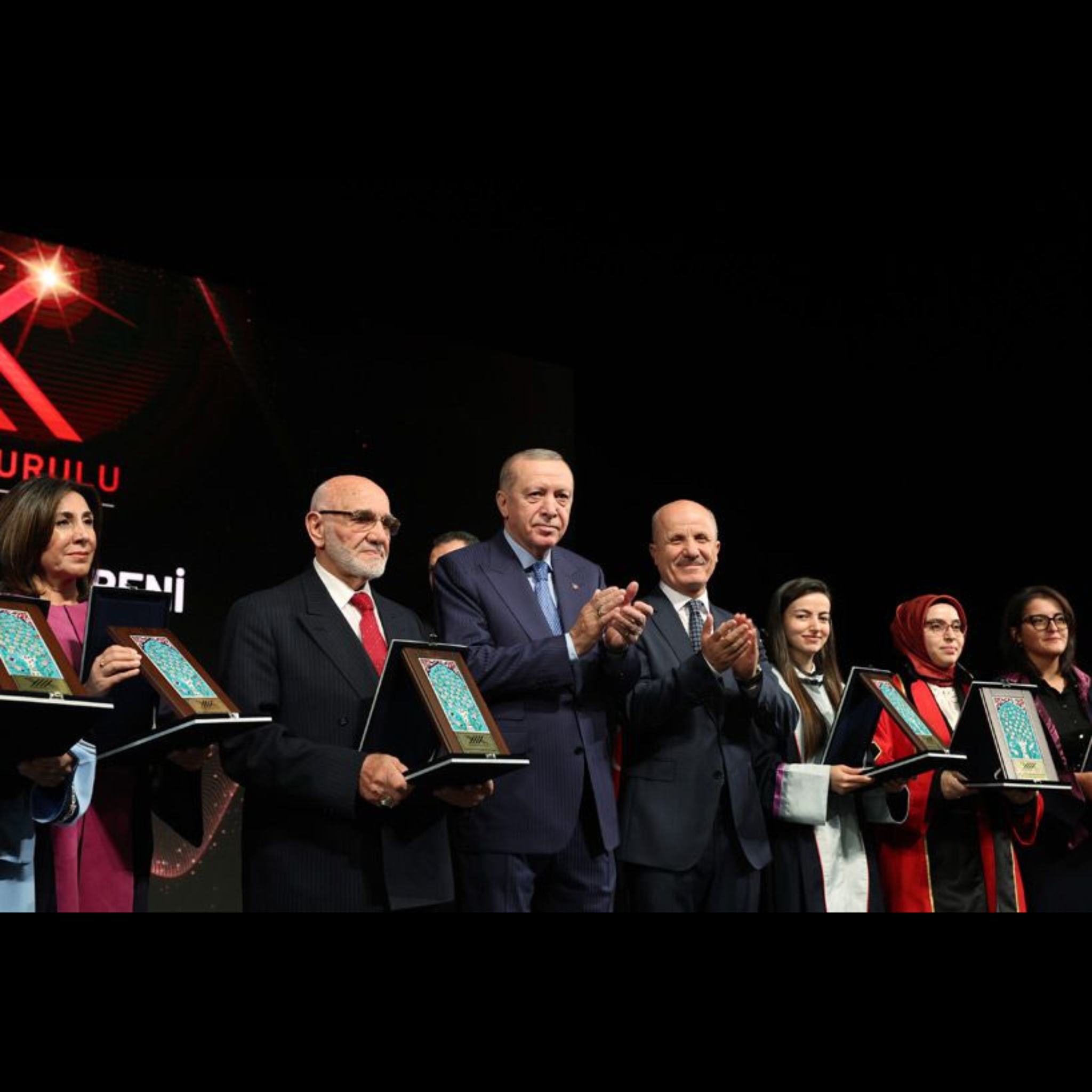 Tören, Cumhurbaşkanı Erdoğan’ın ödül alan akademisyenlerle sahnede çektirdiği toplu hatıra fotoğrafıyla sona erdi.