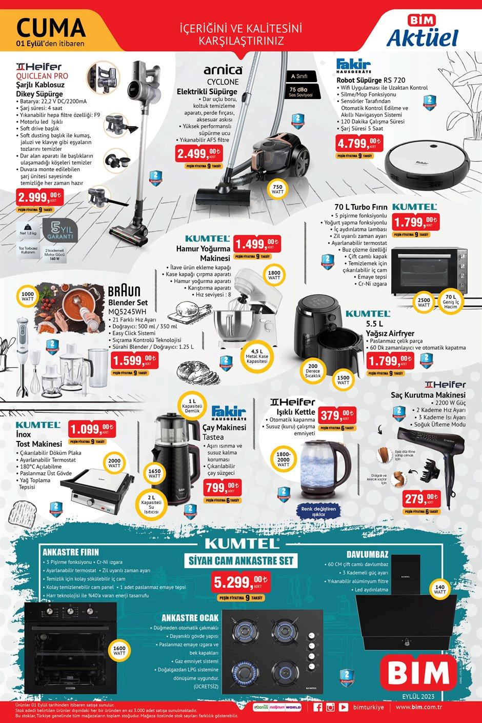 BİM resmi internet adresi üzerinden 1 Eylül indirimli ürünler listesini yayımladı. Yayımlanan kataloğa baktığımızda Elektronik eşyadan küçük ev aletlerine pek çok üründe dev indirimlerin yapıldığı görüldü. İşte indirimli ürünler listesi