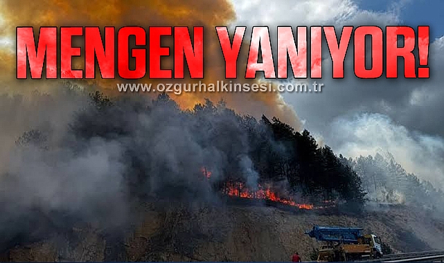 Bolu'nun Mengen ilçesinde çıkan orman yangını rüzgarın etkisi ile yayılırken, 7 helikopterle söndürme çalışmalarına havadan destek veriliyor.