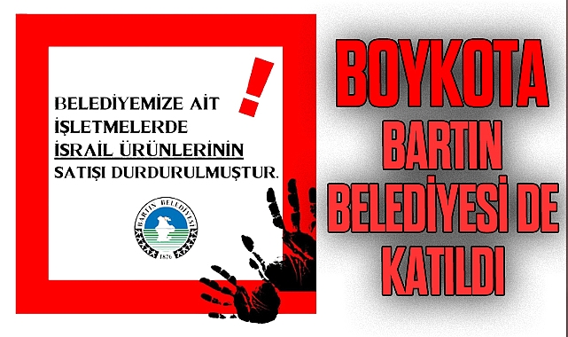 Bartın Belediye Başkanı Hüseyin Fahri Fırıncıoğlu yaptığı açıklamada, Filistin'de saldırılarını sürdüren İsrail'i boykot etme amacıyla belediyeye bağlı işletmelerde İsrail ürünlerinin satılmayacağını söyledi. Başkan Fırıncıoğlu, "Bartın Belediyesi olarak, çocukları kadınları ve masum sivilleri katleden İsrail’i şiddetle kınıyor, dünyanın neresinde olursa olsun zülüm gören masum ve sivil insanların yanında olduğumuzu bir kez daha ifade ediyoruz. Bu nedenle İsrail menşeili ürünleri boykot ediyoruz” dedi.