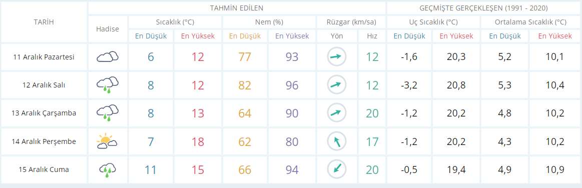 Meteoroloji Genel Müdürlüğü'nden alınan günlük hava raporlarına göre, bu hafta Zonguldak'ta sıcaklığın en düşük 6, en yüksek 18 olması bekleniyor. Nem oranı ise en düşük 62 iken en yüksek %96 olacağı tahmin ediliyor.Haftaya parçalı bulutlu hava ile başlayan ilimiz hafta sonuna kadar yağmurlu hava ile devam edeceği tahmin ediliyor.
