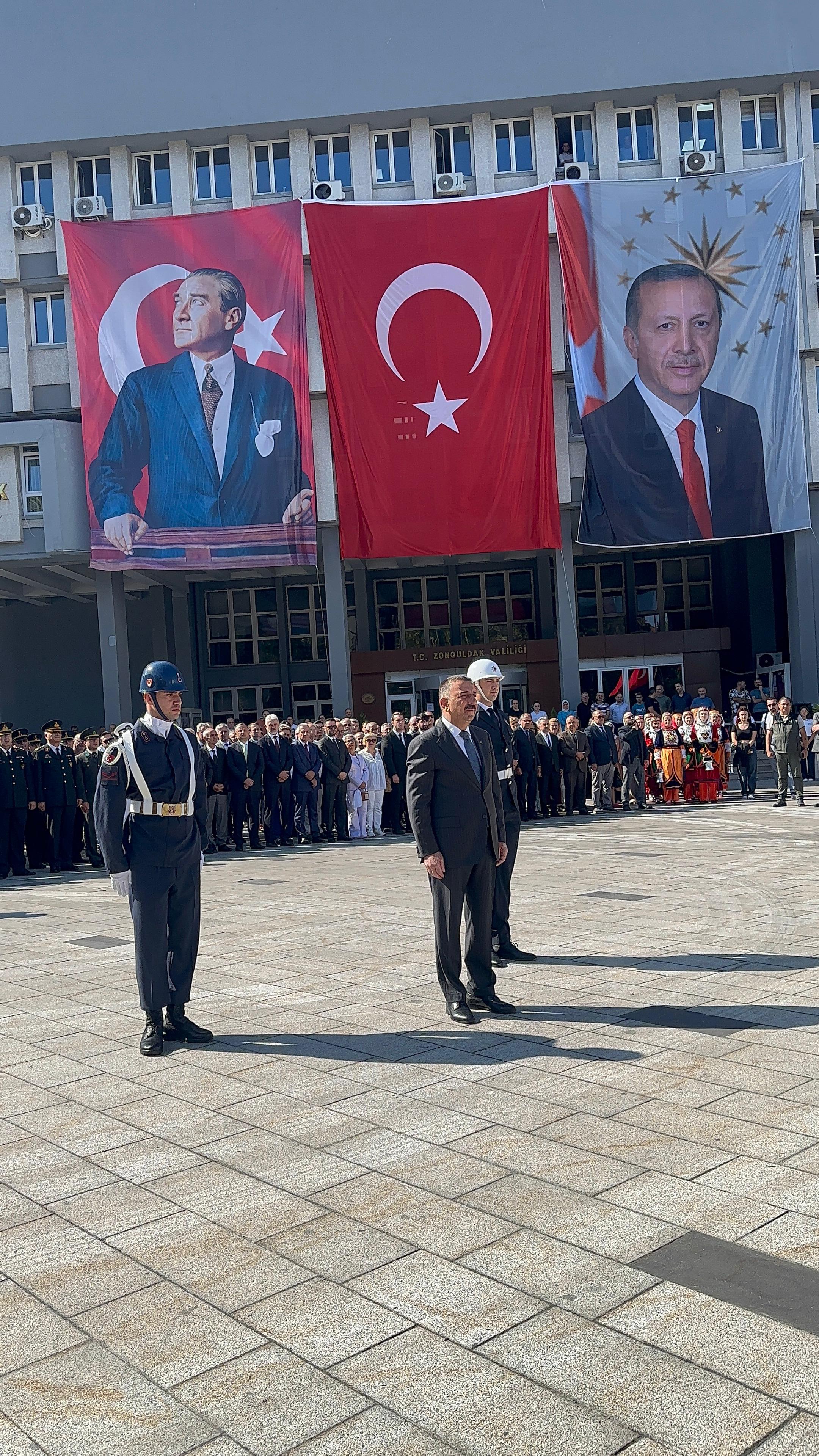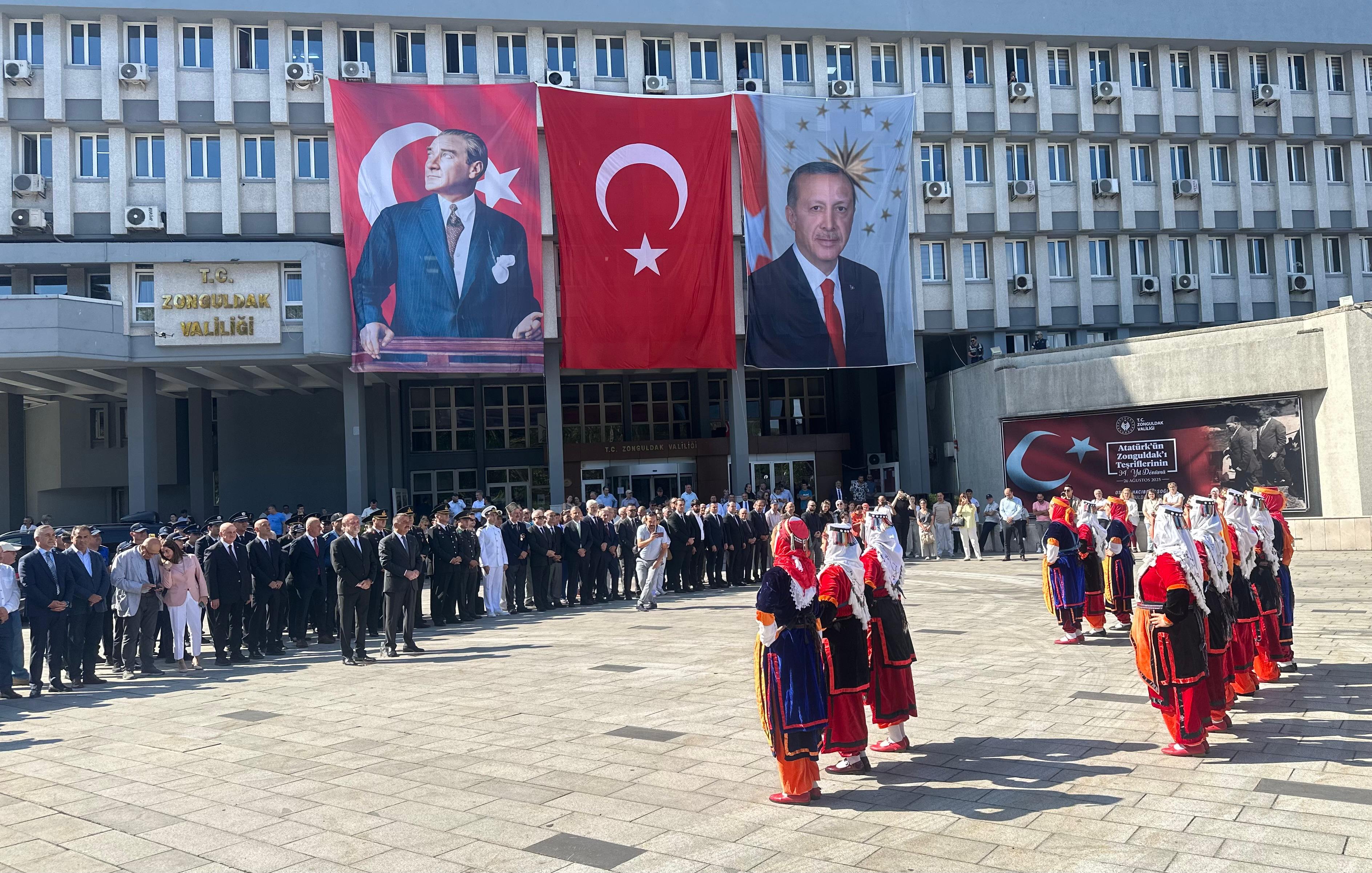 Haber: Cevat Baran ÇAYDAŞ - Şebnem SAKA Valilik önündeki Atatürk Anıtı önünde düzenlenen çelenk törenine Zonguldak Valisi Osman Hacıbektaşoğlu, CHP Artvin Milletvekili Uğur Bayraktutan, Çorum Milletvekili Mehmet Tahtasız, Bartın Milletvekili Aysu Bankoğlu, İstanbul Milletvekili Kadri Enis Berberoğlu, Zonguldak Belediye Başkan Vekili Atınç Kayınova, kolluk kuvveti amirleri, siyasi parti ile sivil toplum kuruluşu temsilcileri, daire müdürleri ve vatandaşlar katıldı.Atatürk Anıtı'na çelenklerin konulmasının ardından saygı duruşunda bulunulup İstiklal Marşı okundu. Günün anlam ve önemine dair konuşmasını yapmak üzere kürsüye davet edilen Belediye Başkan Vekili Kayınova, "Bu özel gün Atatürk’ün sadece Zonguldak'a ziyareti değildir. 26 Ağustos ulusal sanayi devriminin kökünü oluşturan enerjiyi yaratan Zonguldak'ın sanayi kalkınmasının adımlarının atıldığı gündür" dedi.Tören şiirlerin okunması ve halk oyunları gösterileriyle sona erdi.