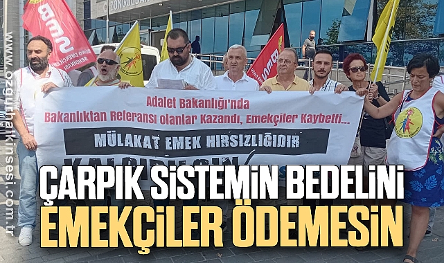 Haber: Cevat Baran ÇAYDAŞ Toplanan sendika üyeleri adına açıklama BES Zonguldak Şube Başkanı Hasan Fayız tarafından okundu. Açıklamaya CHP Zonguldak İl Başkan Yardımcıları Onur Altuntaş ve Selim Cansızoğlu da destek verdi.Şube Başkanı Fayız, açıklamasında, artan iş yükü, yoğun mobbing, keyfi soruşturmalar ve uzun mesailerin yargı çalışanlarını bunalıma sürüklediğini söyledi.Fayız, "Toplumda adalet duygusunun ortadan kalkmasının en temel nedeni olan yargı sisteminin bağımsızlığını kaybetmesidir. Keza periyodik olarak çıkarılan yargı paketleri dava sayılarındaki artış ve yıllarca süren dava süreçleri yargı emekçilerinin çalışma hayatını kâbusa çevirmiş durumda. Ağır iş yüküne eşlik eden yoğun mobbing, bir yanda keyfi olarak açılan soruşturmalar, mesai kavramı gözetmeksizin çalışmaya zorlanan yargı emekçilerini bunalıma sürüklemektedir" ifadelerini kullandı.