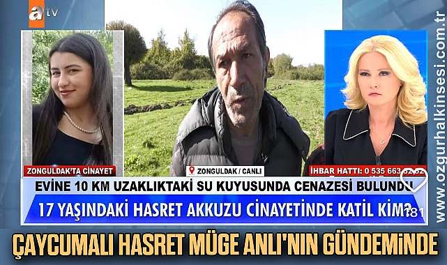 Çaycuma ilçesine bağlı Kızılbel Köyü’nde 2 gündür kayıp olan 16 yaşındaki Hasret Akkuzu’nun dün su kuyusunda cansız bedeni bulunmuştu. Genç kızın esrarengiz ölümüne ilişkin soruşturma sürerken, ailesi ATV ekranlarında yayınlanan Müge Anlı ile Tatlı Sert programına bağlanarak yardım istedi.Çaycumalı genç kızın acılı ailesi, Müge Anlı'ya yaptıkları açıklamada, olayın intihar mı yoksa cinayet mi olduğu konusunda bir bilgilerinin olmadığını söyledi.