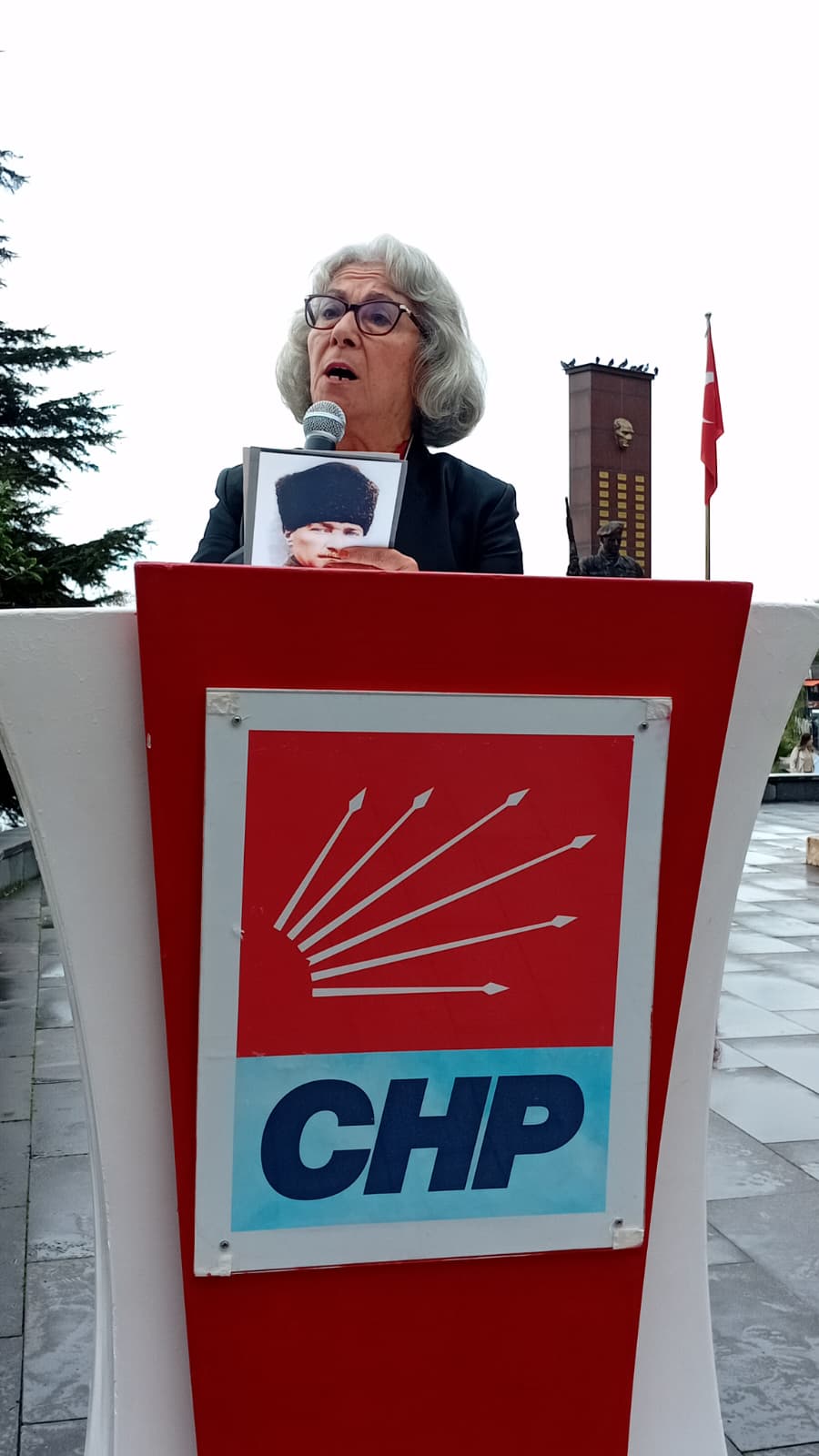 Günün anlam ve önemine dair Atatürkçü Düşünce Derneği Şube Başkanı Zeynep Ünal bir konuşma yaptı. Ünal'ın ardından kürsüye çıkan CHP Zonguldak Milletvekili Eylem Ertuğrul, AKP iktidarının siyasi oyunlarla kazandıkları belediyeleri ellerinden aldığını belirterek, şöyle konuştu:"15,5 milyon vatandaşımızın oyuyla dünya tarihinde eşi benzeri görülmemiş bir şekilde ön seçimle Cumhurbaşkanı adayımız olan Sayın Ekrem İmamoğlu ve ekibinin maruz kaldığı akıl almaz saldırılara hepimiz acı şekilde şahit oluyoruz. Düşünebiliyor musunuz? Rüşvet dediler olmadı. Çete dediler olmadı. Şimdi casusluk gibi akla izana sığmayacak delice iftiralar atarak kendisini esir tutmaya çalışıyorlar. Ülkemizde demokrasinin geldiği nokta bu. Kazanamadıkları belediyelerde yaptıkları ayak oyunlarıyla belediye başkanlarımızı esir alıyorlar. Ayak oyunlarıyla kazanamadıkları belediyeleri kazanmaya çalışıyorlar ve 60'ın üzerinde belediyeye seçim sürecinden beri resmen el koydular, zapt ettiler. Ülkemizin hukuk devleti olma vasfı tamamen ortadan kalkmış durumda. Yargı AKP'nin yaptığı usulsüzlükleri nasıl kapatırım? Nasıl rakiplerini egale ederim anlayışıyla çalışıyor."