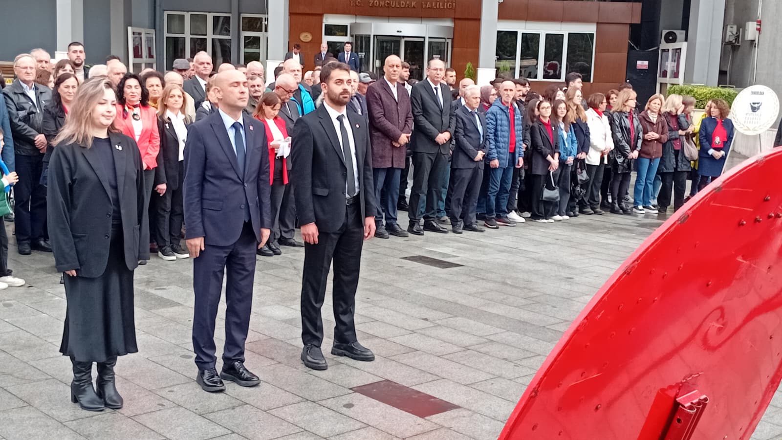Haber: Cevat Baran ÇAYDAŞTörene, CHP İl Başkanı Devrim Dural, Zonguldak Milletvekili Eylem Ertuğrul, Zonguldak Belediye Başkan Vekili Adil Bahadır, ilçe, kadın ve gençlik kolları başkanları, sivil toplum kuruluşu temsilcileri ve partililer katılım gösterdi.Çelenklerin anıta sunulmasının ardından saygı duruşunda bulunuldu ve İstiklal Marşı okundu.
