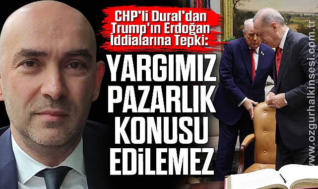 CHP Zonguldak İl Başkanı Devrim Dural, ABD Başkan Donald Trump'ın, Cumhurbaşkanı Recep Tayyip Erdoğan ile Oval Ofis'te gerçekleştirdiği görüşme sonrası kamuoyuna yansıyan sözlerine ilişkin bir açıklama yayımladı. Dural, açıklamasında, Trump'ın açıklamalarının Türkiye Cumhuriyeti'nin bağımsızlığı ve saygınlığı açısından "son derece kaygı verici" olduğunu belirtti.Açıklama şöyle:"ABD Başkanı Donald Trump’ın Oval Ofis’te Cumhurbaşkanı Sayın