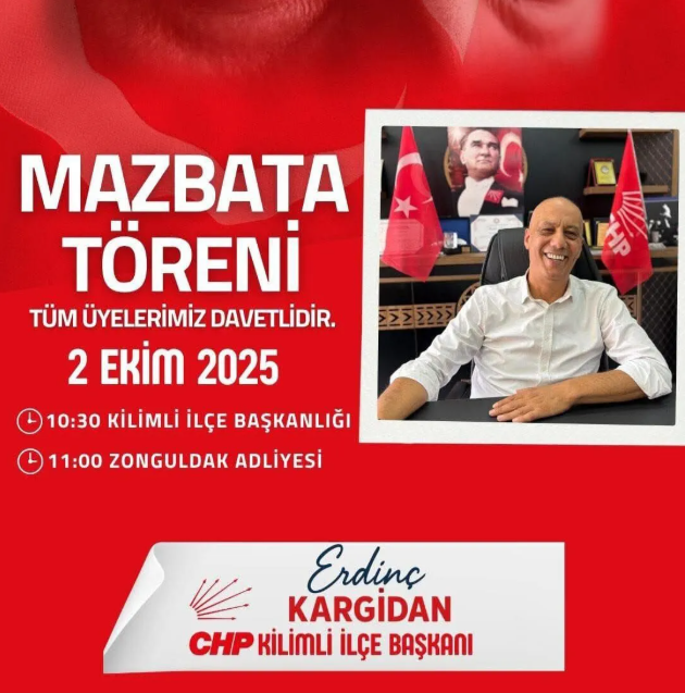 CHP Kilimli İlçe Başkanı Erdinç Kargidan, geçtiğimiz Pazar günü Gönlü Ferah Düğün Salonu'nda gerçekleştirilen ilçe kongresinde tek aday olarak girdiği seçimde başkanlığa seçilmesinin ardından mazbatasını almaya hazırlanıyor.
