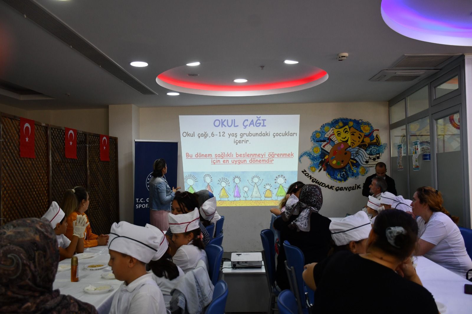 Atatürk Devlet Hastanesi Diyetisyeni Dilek Yıldırım, Anıl Cömert İlkokulu’ndan gelen öğrenci ve velilere yönelik “Okul Çağındaki Çocuklarda Sağlıklı Beslenme” konulu seminer verdi.Seminerde, çocukların gelişiminde dengeli beslenmenin önemi, doğru atıştırmalık seçimleri ve ailelerin bu süreçteki rolü anlatıldı. Etkinlik kapsamında çocuklar anneleriyle birlikte sağlıklı atıştırmalıklar hazırlayarak öğrendiklerini uygulama fırsatı buldu.Zonguldak Gençlik Merkezi yetkilileri, bu tür etkinliklerle hem çocukların hem de ailelerin bilinçlenmesini sağlamayı ve sağlıklı nesillerin yetişmesine katkıda bulunmayı hedeflediklerini belirtti.