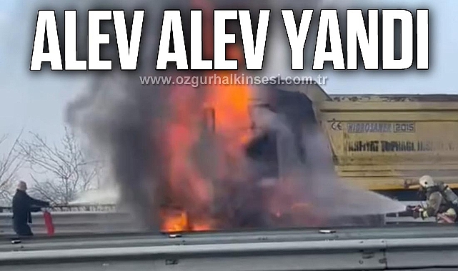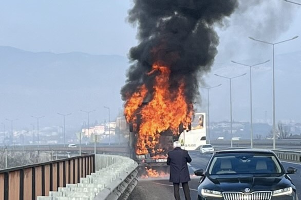 Yangın, Düzce Kuzey Çevre bağlantı yolunda meydana geldi. Alınan bilgilere göre, Düzce’den Çamköy istikametine seyir halinde olan 06 FS 434 plakalı damperli kamyonun fren balatalarından dumanların yükseldiğini gören sürücü aracı emniyet şeridine çekerek araçtan ayrıldı. İhbar üzerine bölgeye Düzce Belediyesi İtfaiye Müdürlüğü ekipleri sevk edilirken, araç alev topuna döndü. Güzergah üzerinden geçen sürücüler yangın söndürme tüpleri ile müdahalede bulunmasına rağmen alev alev yanan damperli kamyonda ki yangını itfaiye ekipleri söndürdü. Kamyonun kabin kısmı tamamen kullanılamaz hale gelirken, yangın sebebi ile tek şeritten verilen yol aracın kaldırılmasının ardından normal seyrine döndü.