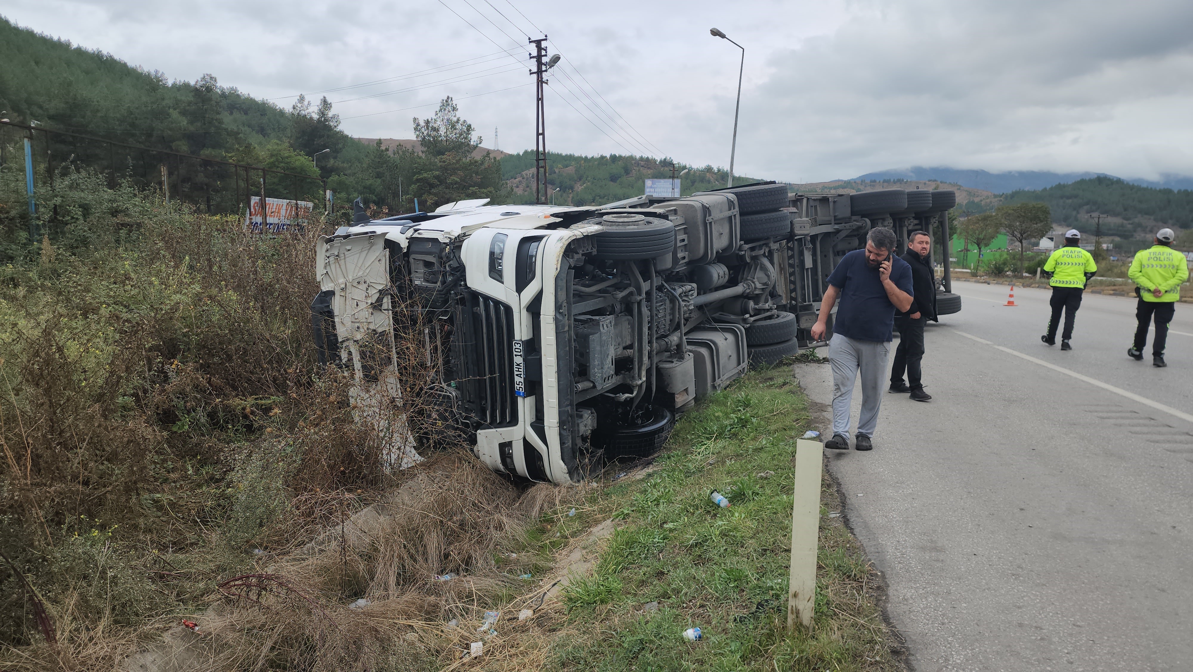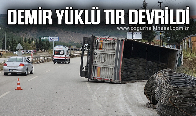 Kaza, Karabük - Eskipazar karayolu Kemaloyman mevkiinde meydana geldi. Murat D. idaresindeki 55 AHK 103 plakalı demir yüklü Tır sürücüsünün direksiyon hakimiyetini kaybetmesi sonucu devrilerek 100 metre sürüklendi. Kasasındaki her biri 2 tonluk demirlerin yola savrulduğu kazada sürücünün yardımına sanayi esnafı ile göreve giden askerler yetişti. kaza sonrası yan yatan tırın kabininden kendi imkanları ile çıkan sürücü kazada yaralanmazken, yol bir süre tek şeritten sağlandı.