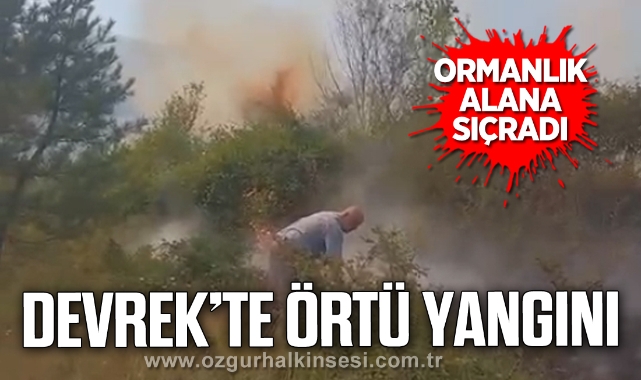 Zonguldak’ın Devrek ilçesine bağlı Akçasu Köyü Ahmetoğlu Mahallesi’nde çıkan örtü yangını ormanlık alana sıçradı.