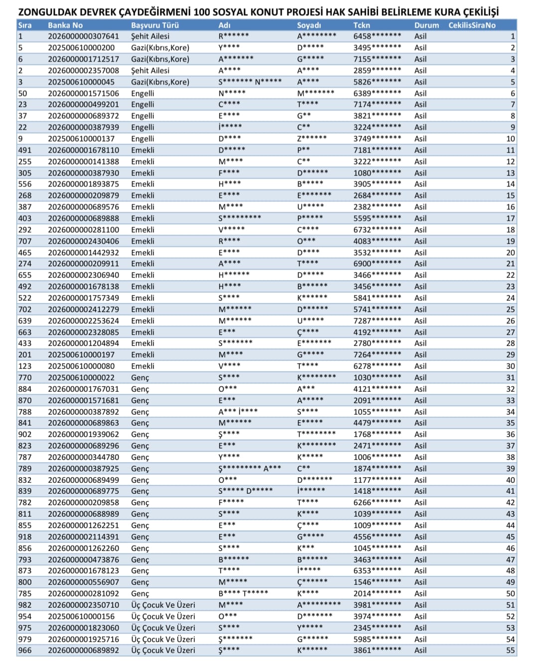 Çevre, Şehircilik ve İklim Değişikliği Bakanlığı koordinesinde yürütülen proje kapsamında Kilimli’de inşa edilecek sosyal konutlara başvuran vatandaşlar arasından yapılan kura çekimiyle hak sahipleri belirlendi.Aşağıdaki Linke Tıklayabilirsiniz.https://talep.toki.gov.tr/500binkonut/iller/pdf/ZonguldakKS8.pdf