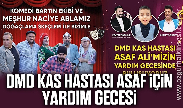 Duchenne Musküler Distrofi (DMD) hastası 6,5 yaşındaki Asaf Ali Özkan'ın tedavisine destek olmak amacıyla düzenlenecek yardım gecesi etkinliğinde, Komedi Bartın ekibi ve Feyyaz Yağmur orkestrası Çaycumalı sanatseverlerle buluşacak.