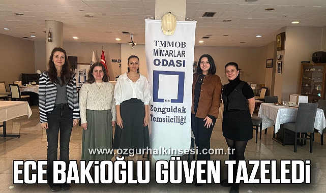 TMMOB Mimarlar Odası Zonguldak İl Temsilciliği Olağan Genel Kurulu'nda mevcut İl Temsilcisi Ece Bakioğlu, güven tazeleyerek yeniden görev seçildi.