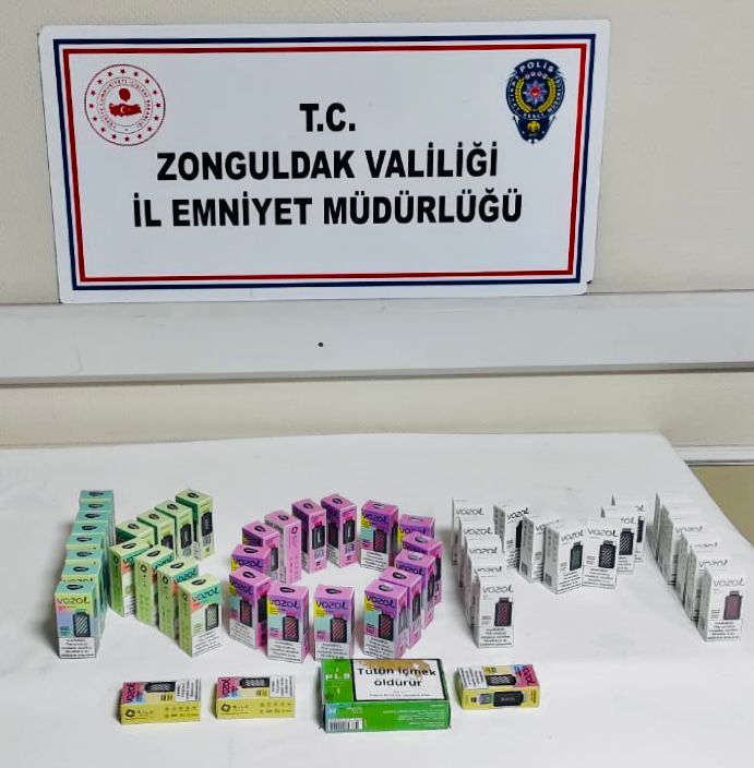 KOM Şube Müdürlüğü ekiplerince gerçekleştirilen uygulamada; Kozlu İlçesi uygulama noktasında durdurulan kapalı kasa kamyonet içerisinde 50 adet elektronik sigara ve 500 gram bandrolsüz nargile tütünü ele geçirildi. Olay ile ilgili araç sürücüsü S.P. (30) isimli şahıs hakkında 5607 Sayılı Kaçakçılıkla Mücadele Kanununa Muhalefet Suçundan adli tahkikata başlatıldı.