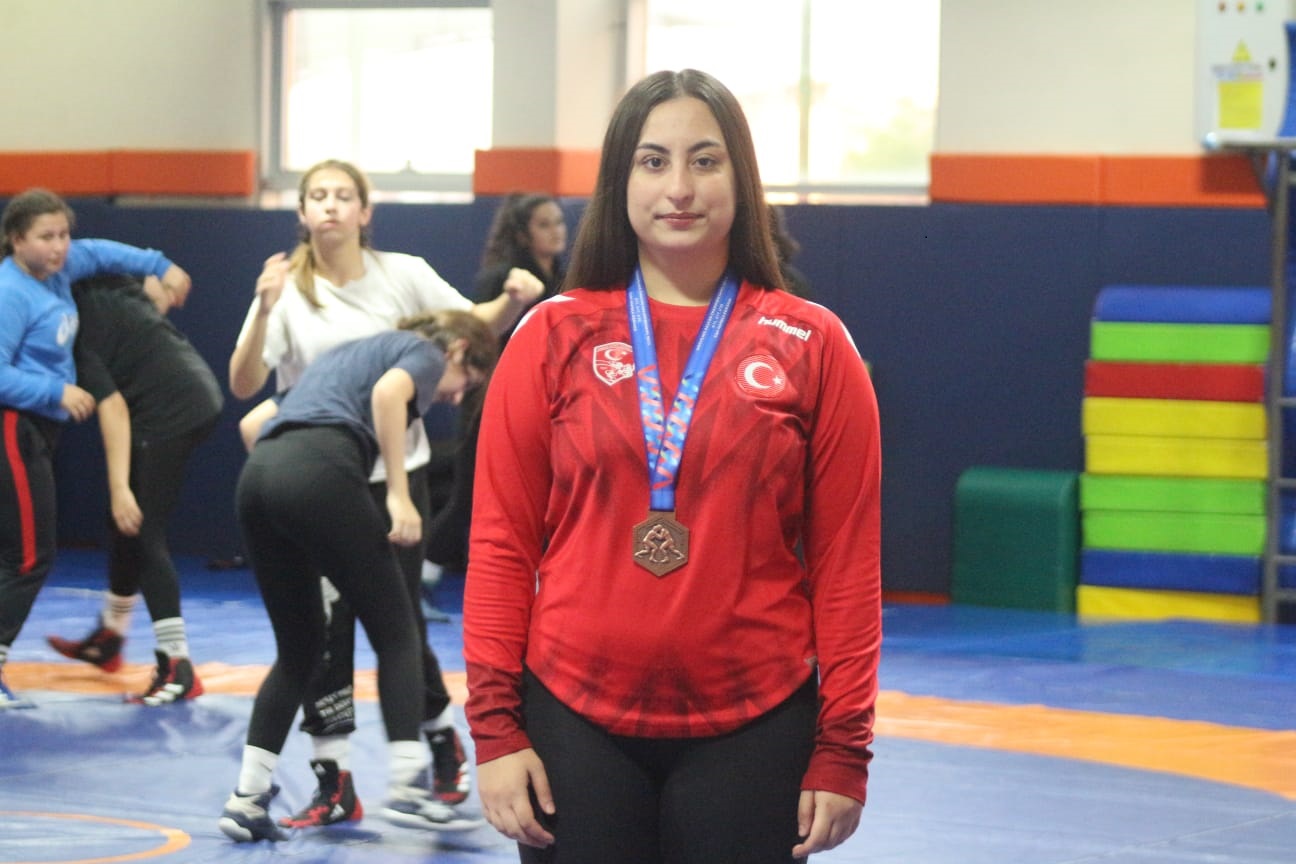 SAĞLIK RAPORUYLA GELEN BAŞARI Şampiyona öncesi yoğun bir hazırlık sürecinden geçtiğini belirten milli güreşçi Hazal Tabak ise, "Biz programlı şekilde antrenmanlarımızı yapıyoruz. Sezon açıldığında yoğun bir şekilde, çift antrenman yaptığımız, ağırlık ve kondisyon zamanlarımız oluyor. Türkiye Şampiyonası’na katıldığım için kamplara katılma hakkımız oluyor. Yoğun bir kamp döneminden geçtim diyebilirim" dedi. Tabak, Balkan Şampiyonası'ndan önce katıldığı Türkiye Şampiyonası’na sağlık raporuyla mindere çıktığını belirterek, "O yüzden benim için biraz daha zor oldu. Hem yaş hem güç olarak benden daha kuvvetlilerdi. Sağlık raporu dediğimiz şey de çeşitli yaş kategorilerinde şampiyonaya katılabilmek için fiziksel anlamda yeterli olup olmamanıza bakılması diyebilirim" şeklinde konuştu.