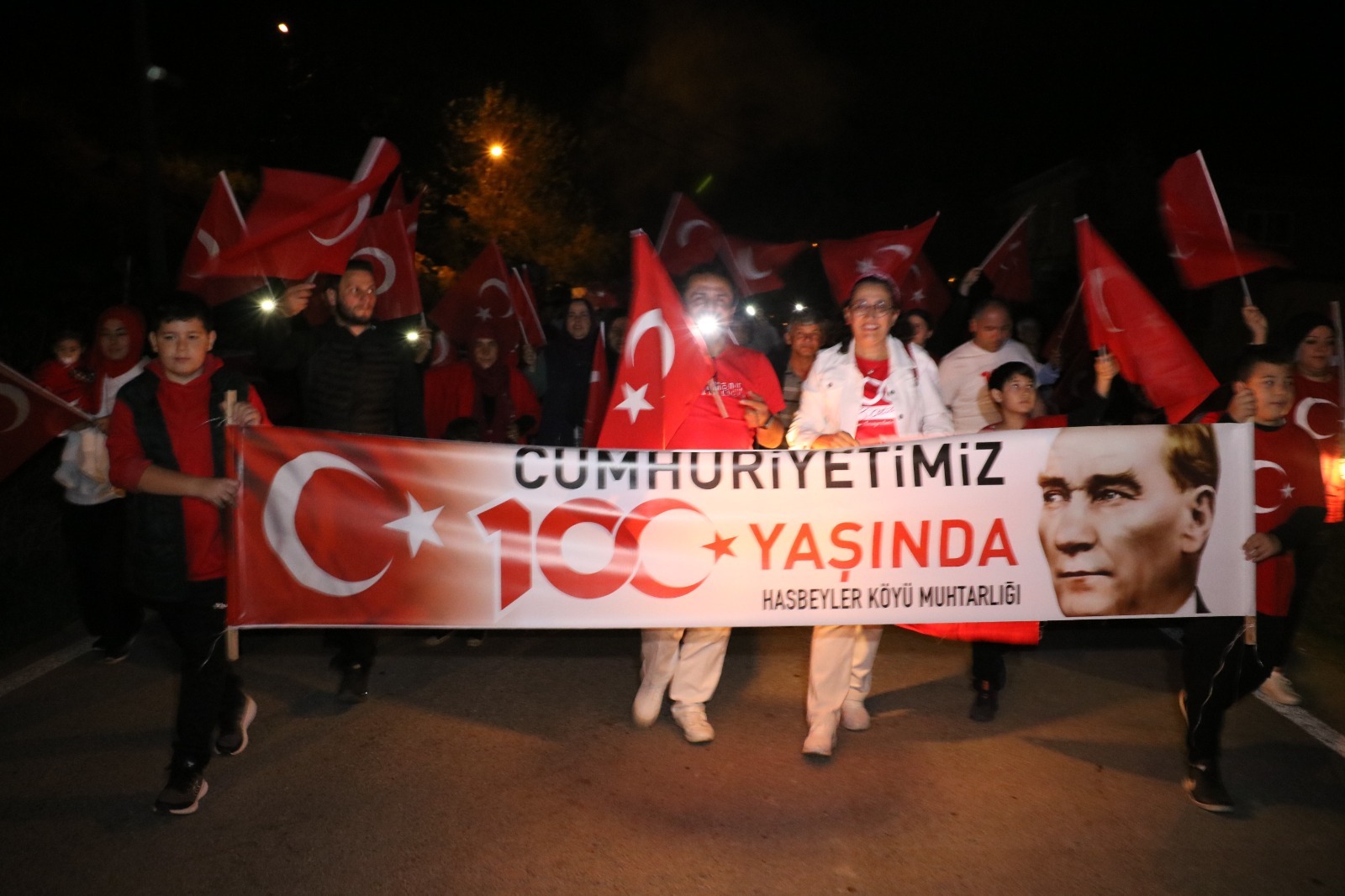Hasbeyler Köyü’nde Cumhuriyet Bayramı kutlaması fener alayı ile başladı. Ellerinde meşaleler ve Türk Bayrakları ile yaklaşık 1,5 kilometre yürüyen köylüler, tüm şehitler için bir dakikalık saygı duruşunda bulundu ardından İstiklal Marşı’nı söyledi.