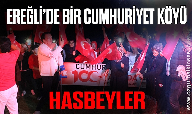 Ereğli ilçesine bağlı Hasbeyler Köyü’nde Cumhuriyet’in 100. Kuruluş yıl dönümü düzenlenen fener alayı ve çeşitli etkinliklerle kutlandı.Cumhuriyet’in 100. Kuruluş yıl dönümü yurdun dört bir yanında olduğu gibi Ereğli ilçesine bağlı Hasbeyler Köyü’nde de çeşitli etkinliklerle kutlandı.