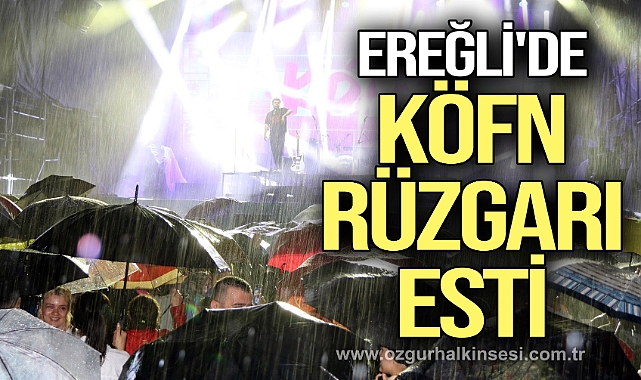 Kdz. Ereğli ilçesinde bu yıl 23.’sü düzenlenen Uluslararası Sevgi, Barış, Dostluk, Kültür ve Sanat Festivali’nin üçüncü gününde Köfn sahne aldı. Yağmura rağmen hayranları ünlü müzik grubunun parçalarıyla eğlendi.