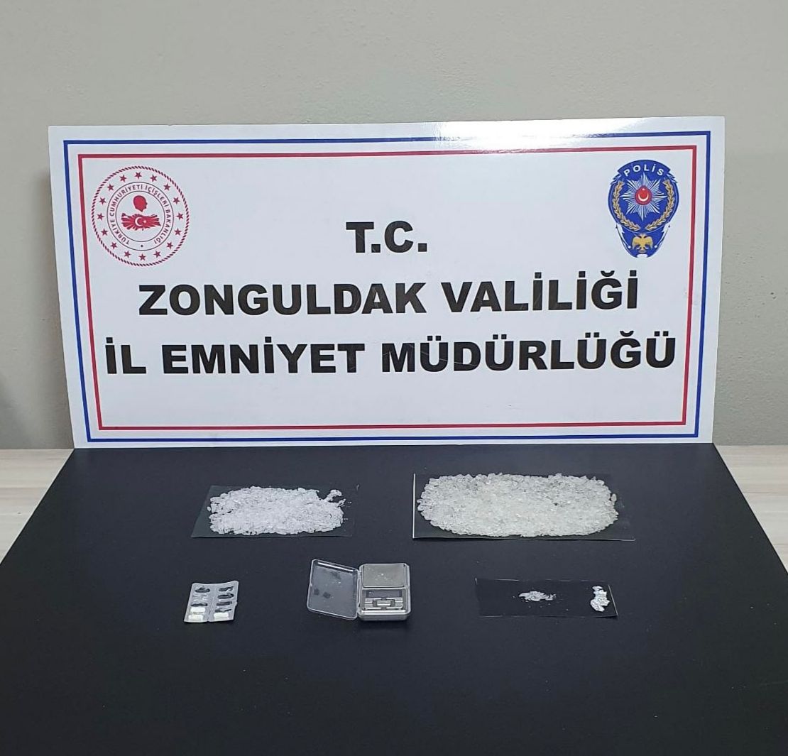 H.A, T.K, O.A ve M.E isimli şüpheli şahısların kullandığı ikamette yapılan aramada; (330) gram Metamfetamin Maddesi, 1 adet çalışır vaziyette hassas terazi ve 3 adet uyuşturucu hap ele geçirildi. Şüpheli H.A, T.K, O.A ve M.E isimli şahıslara Uyuşturucu veya Uyarıcı Madde Ticareti ve Kullanma suçundan adli işlem yapıldı.