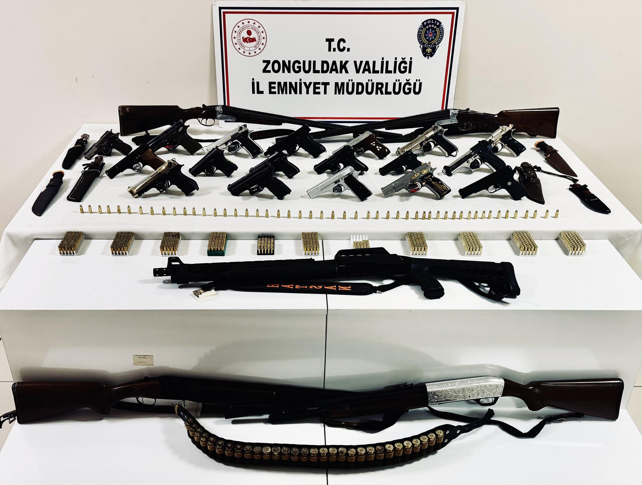 Yapılan eş zamanlı operasyonda; 5 adet ruhsatsız yivsiz tüfek, 12 adet ruhsatsız tabanca, 6 adet kurusıkı tabanca olmak üzere toplam 23 adet ruhsatsız silah, 22 adet şarjör, 688 adet çeşitli ebatlarda tabanca fişeği, 154 adet tüfek fişeği, 16 adet kurusıkı fişeği olmak üzere toplam 858 fişek ve 6 adet bıçak ele geçirildi.