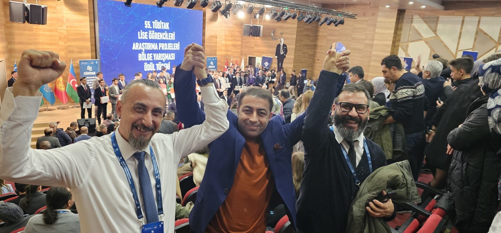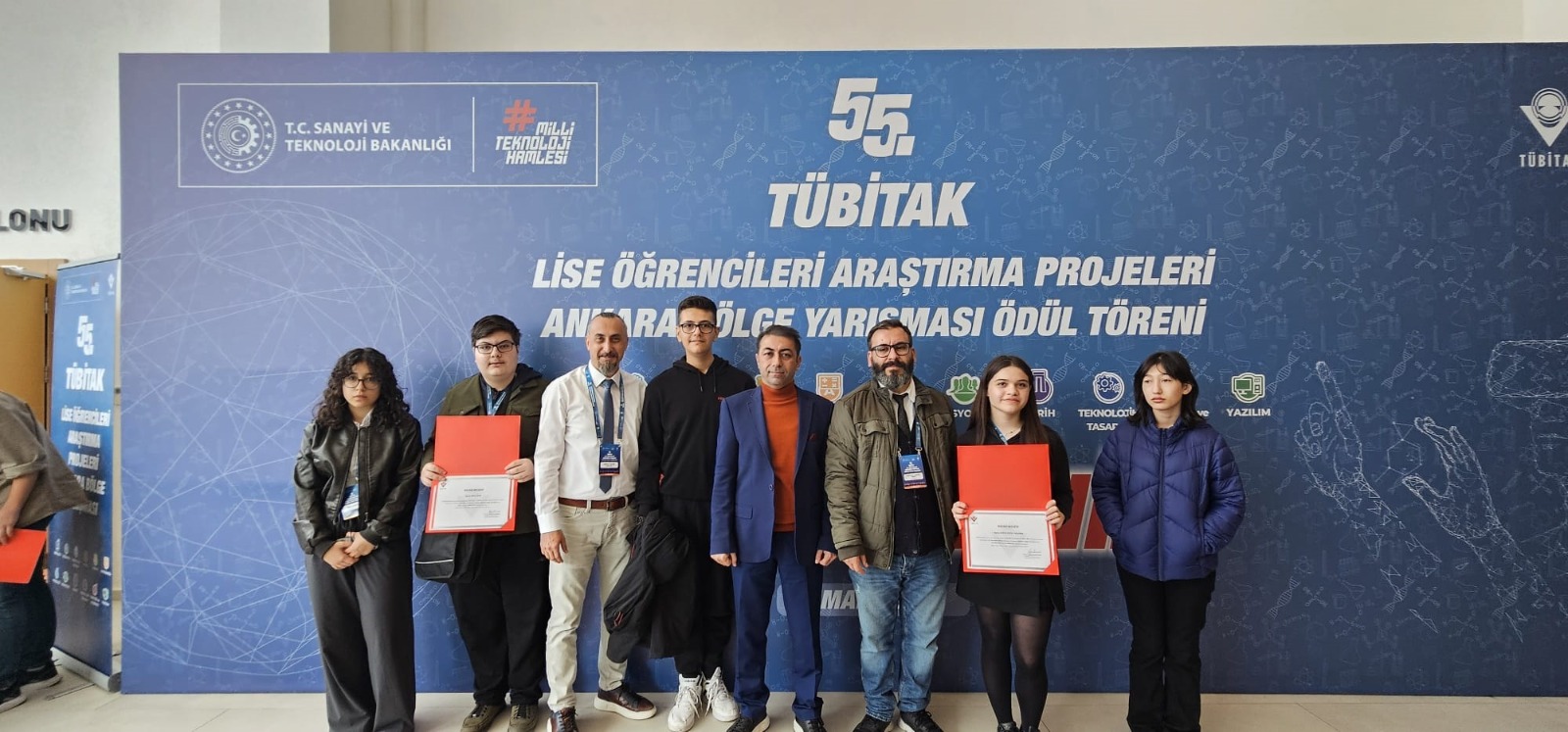 BİLSEM Müdürü Fatih Akyüz ile birlikte; Etimesgut Belediyesi Türk Tarih Müzesi Konferans Salonunda düzenlenen törende; BİLSEM Fizik öğretmeni Adnan Akyüz, rehberlik ettiği öğrenci Onat Akın, Matematik öğretmeni Mustafa Kemal İnce ve rehberlik ettiği Öğrenci Zeren Ecem Akdemir yer aldı.