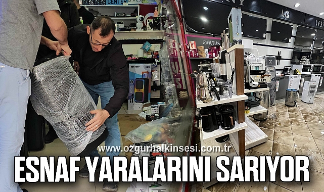 İlçede yaklaşık 10 esnafın iş yerinin su altında kaldığı caddede, sabah saatlerinden itibaren temizlik yapıldı. Çamurla kaplanan zeminler temizlenirken, bazı esnaf kullanılamaz hale gelen ürünlerini dışarı çıkardı. İş yeri sahibi Erkan Bayraktar, "Yaşadığımız doğal afet değil. Bu caddede bir tane mazgal var. O mazgalın tıkanmasından dolayı bütün felaketi yaşadık. 10 dakika içerisinde her şey oldu bitti. Tabandaki bütün ürünlerimiz suya girmiş durumda. Yaklaşık 400 bin liralık zarara uğradık. Belediye hariç bütün devlet kurumları geldi. Belediye ile hala görüşemedik. Hiçbiri gelmediler şu anda. Buna da şükür, canımız yerinde" dedi.