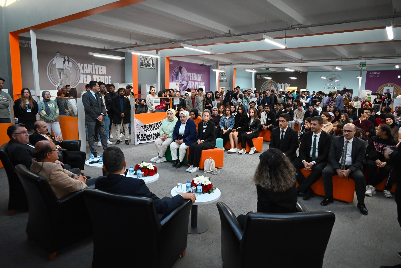 Etkinlikte Farabi Genç Ofis’in incelenmesinin ardından ‘Gençlik Buluşması’ isimli söyleşi gerçekleştirildi. Söyleşide, protokol üyeleri öğrencilerle sohbet ederek onlardan gelen soruları cevapladı.