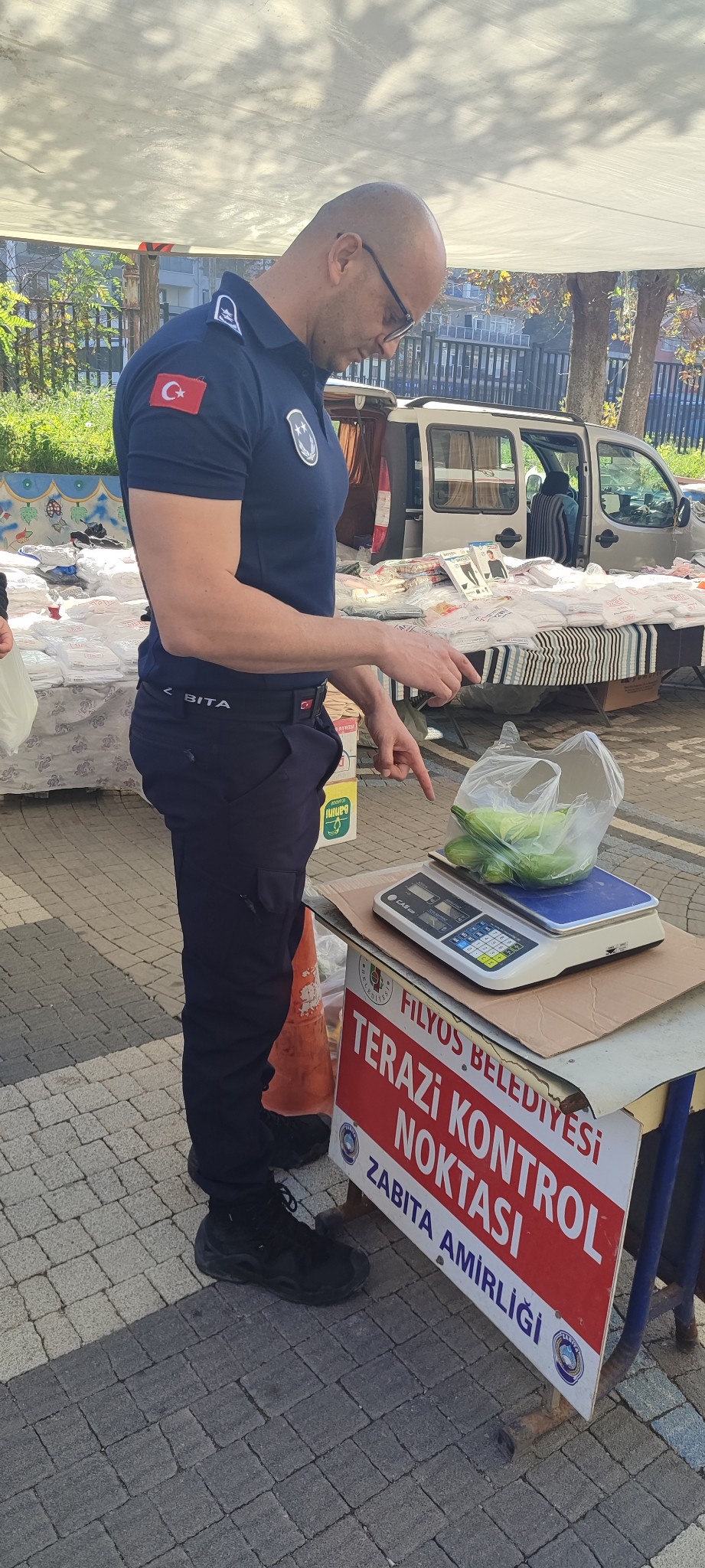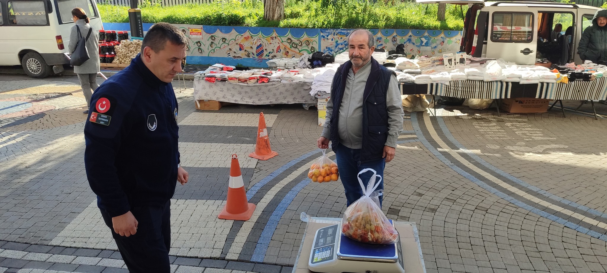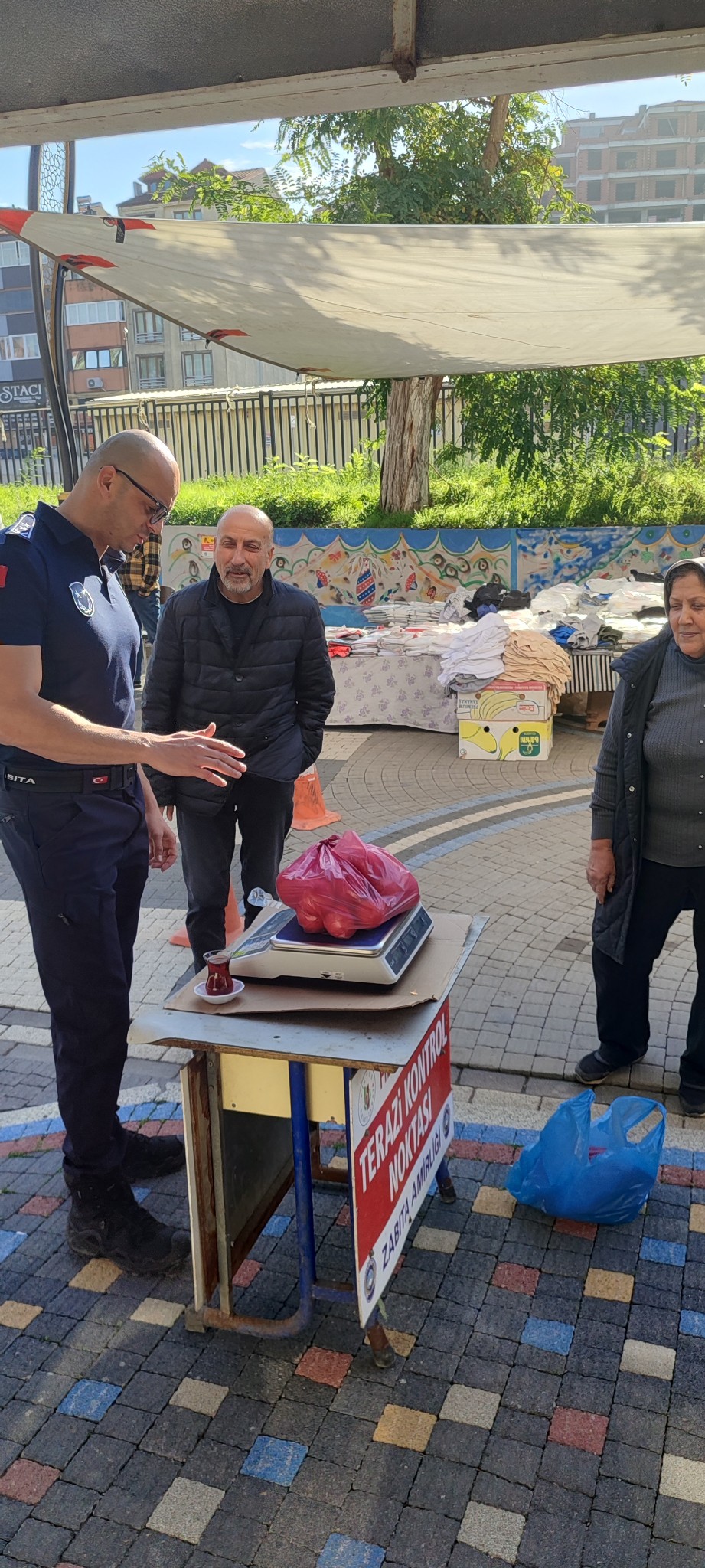 Belediyeden yapılan açıklamaya göre, Zabıta Amirliği ekipleri tarafından pazar yerinde terazi noktası kuruldu. Satışa sunulan ürünlerin doğru gramajda olup olmadığı teyit edildi. Ayrıca denetimler kapsamında etiketsiz olduğu tespit edilen sebze ve meyvelere belediyeye ait logolu etiketlerin yerleştirildiği belirtildi.Açıklamada, "26 Kasım 2025 – Pazar Yeri Denetimi.