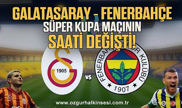 Türkiye FUTBOL Federasyonu (TFF), Fenerbahçe ile Galatasaray arasında oynanacak Süper Kupa karşılaşmasının saatinin değiştiğini duyurdu.