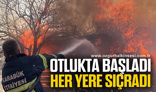 Edinilen bilgiye göre, Cumhuriyet Mahallesi'nde otluk alanda yangın çıktı. Rüzgarın etkisiyle yangın kısa sürede yayılırken, çevredekiler itfaiyeye ihbarda bulundu. Olay yerine Karabük Orman İşletme Müdürlüğü, Karabük Belediyesi itfaiye ekipleri, polis ve 112 sağlık ekipleri sevk edilirken, alevler kısa sürede çevredeki sitelerin garaj ve barakaya sıçradı. Bir garaj ve baraka alevlere teslim olurken, itfaiye ekiplerinin müdahalesiyle alevler evlere sıçramadan kontrol altına alındı.