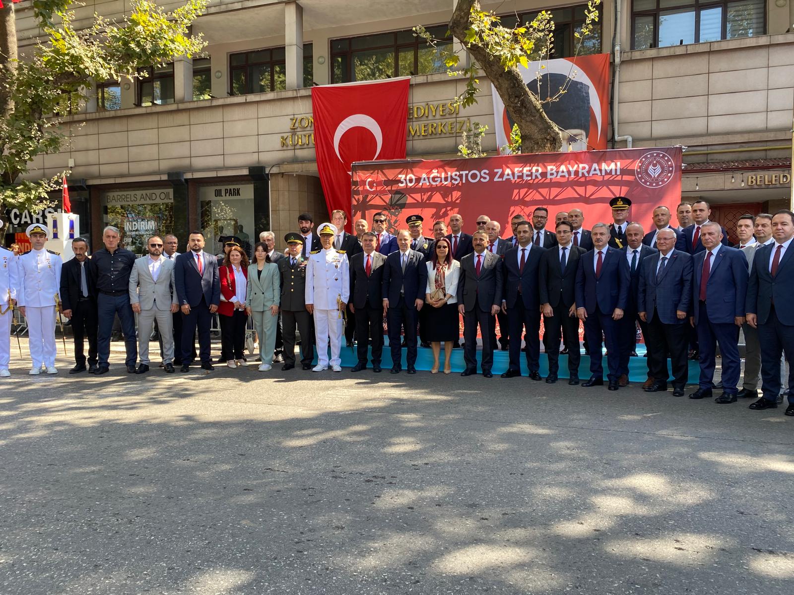 Törene Zonguldak Valisi Osman Hacıbektaşoğlu, Vali Yardımcıları, CHP Zonguldak Milletvekili Deniz Yavuzyılmaz, Zonguldak Belediye Başkanı Tahsin Erdem, İl Genel Meclisi Başkanı Necdet Karaveli, Bülent Ecevit Üniversitesi Rektör Yardımcısı Prof. Dr. Şenol Hakan Kutoğlu, siyasi parti ile sivil toplum kuruluşu temsilcileri, daire müdürleri, kolluk kuvveti amirleri, askeri erkan ve çok sayıda vatandaş katıldı.Zafer Bayramı resmî kutlama programı geçit töreniyle sona erdi.
